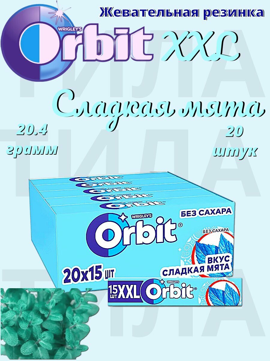 СохранитьOrbit XXL жевательная резинка без сахара "Сладкая мята", 20 пачек по 20,4 гр интересное: