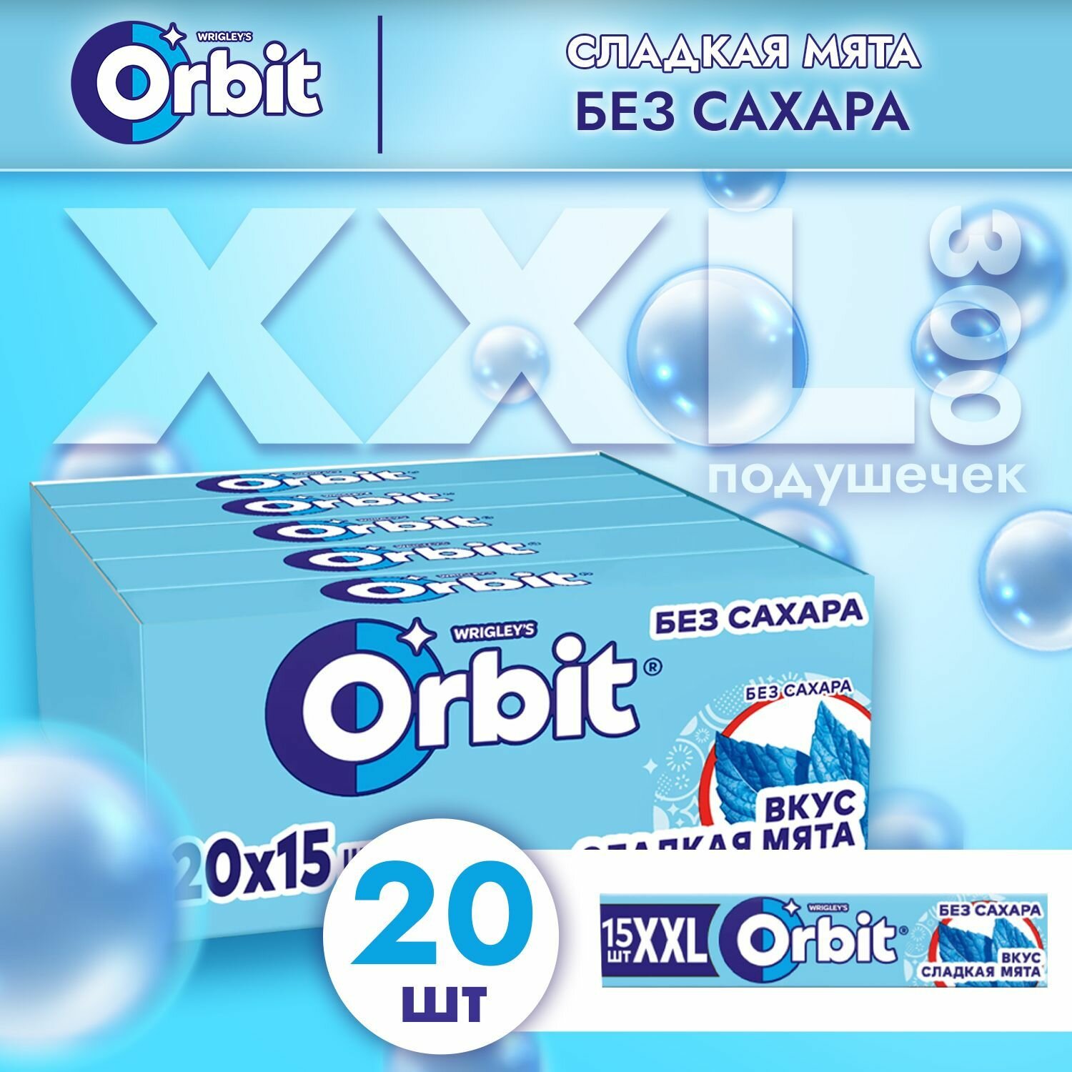 Купить Orbit XXL жевательная резинка без сахара "Сладкая мята", 20 пачек по 20,4 гр