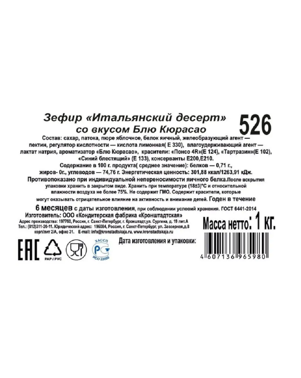 Зефир Кронштадтская КФ Итальянский десерт со вкусом Блю Кюрасао 500гр интересное: