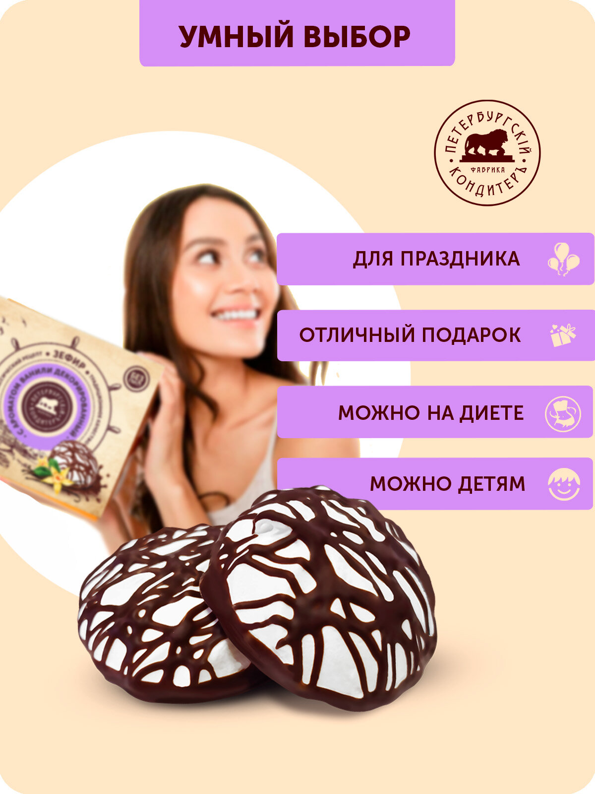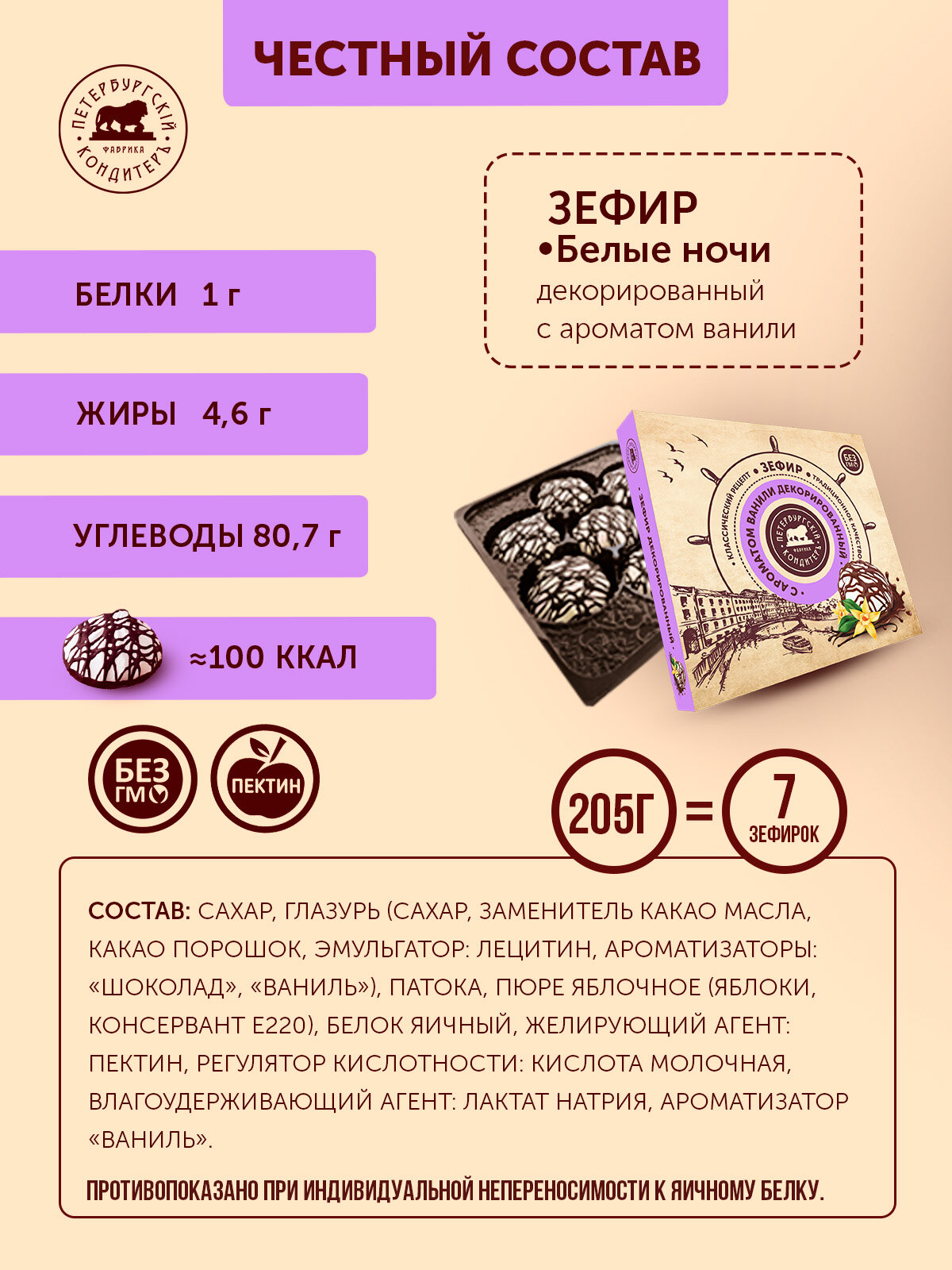 Зефир декорированный Белые ночи 205 грамм Подарочная упаковка, Петербургский КондитерЪ интересное: