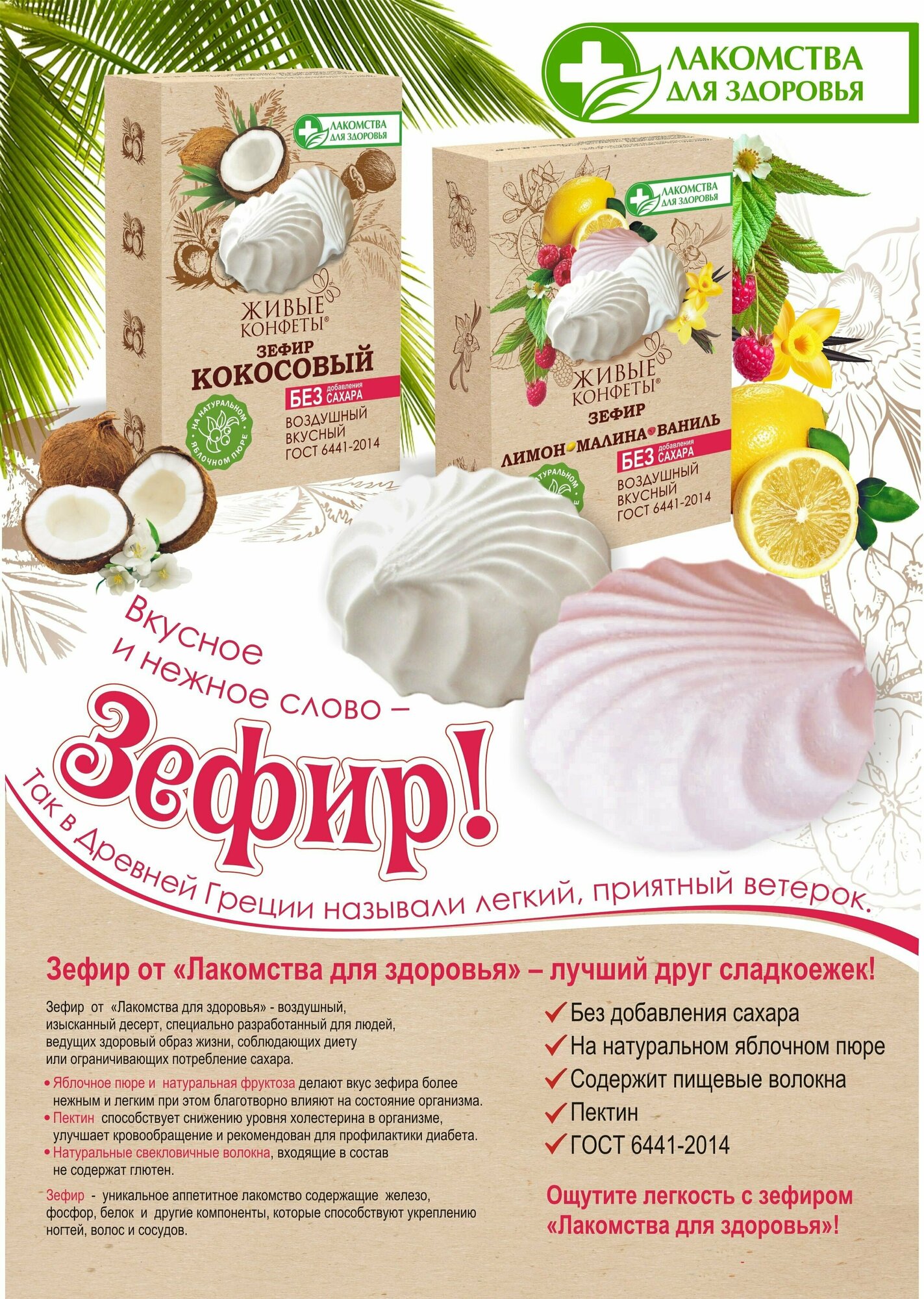 Зефир на фруктозе без сахара Ванильный, Лимонный, Малиновый "Лакомства для здоровья", 240 г - 2 шт. интересное: