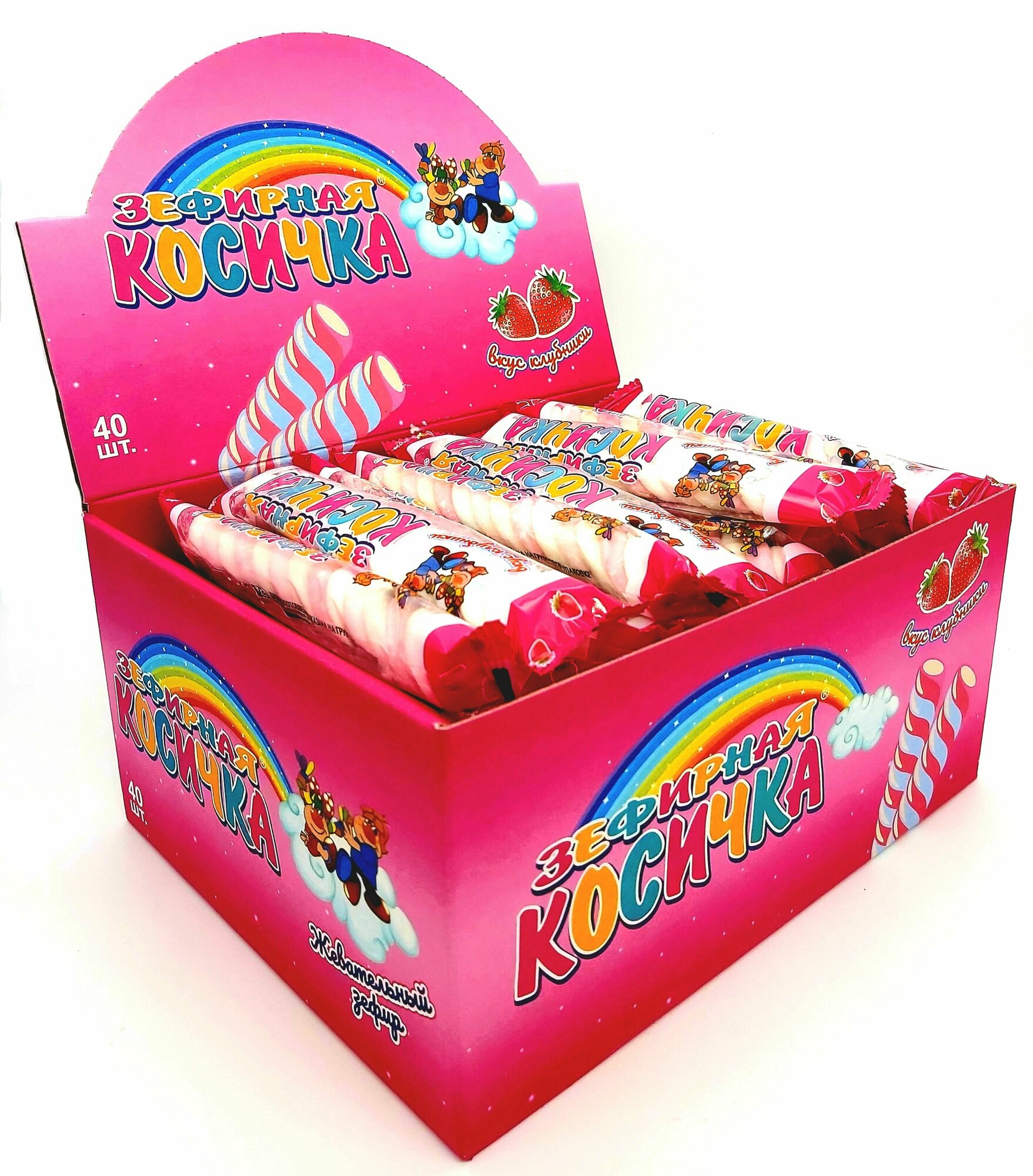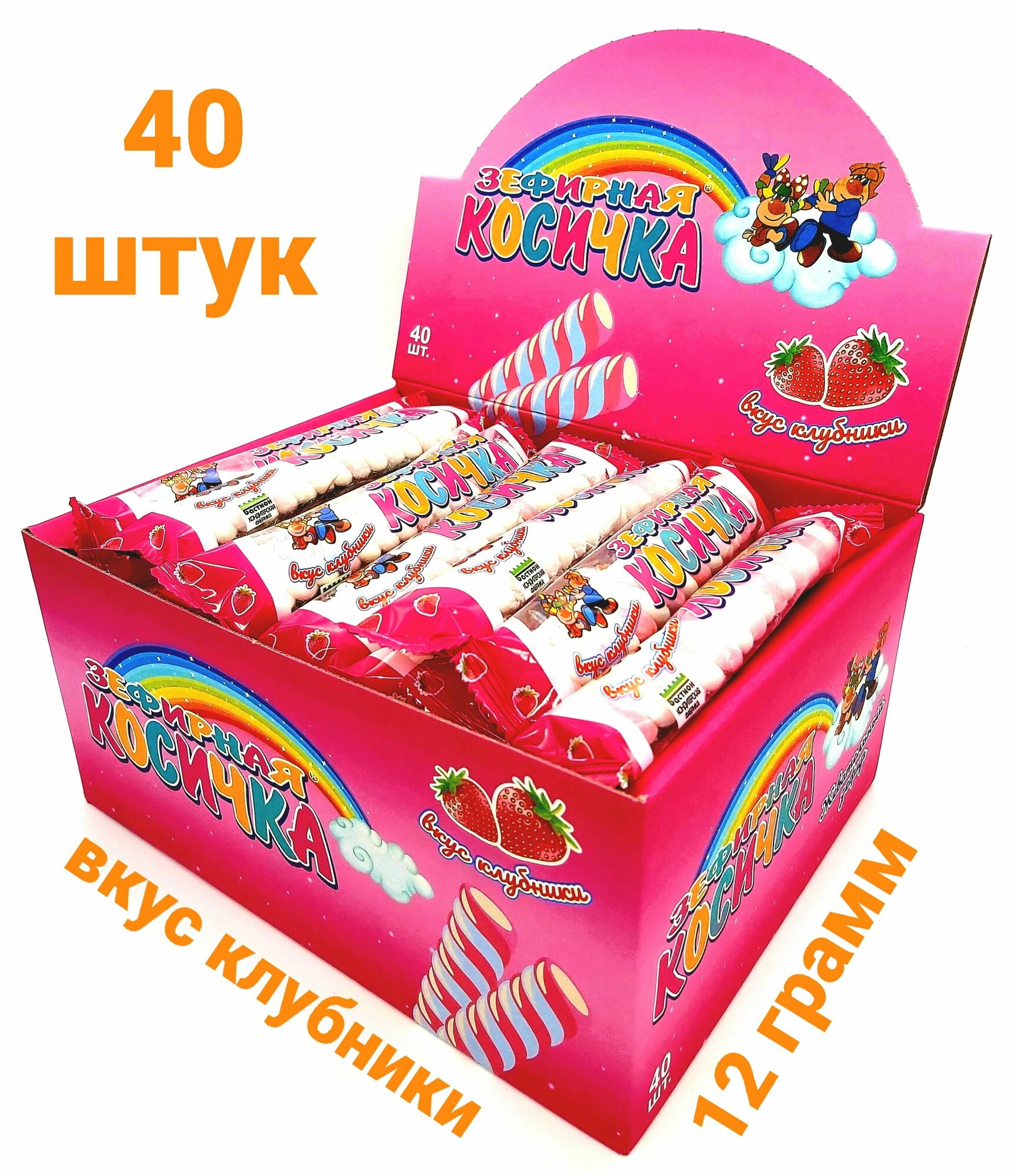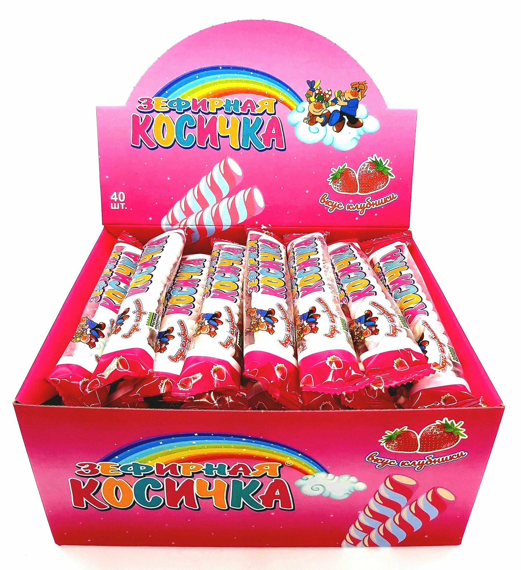 Купить Маршмеллоу зефирная косичка с ароматом клубники 40 шт по 12 гр , Холодок