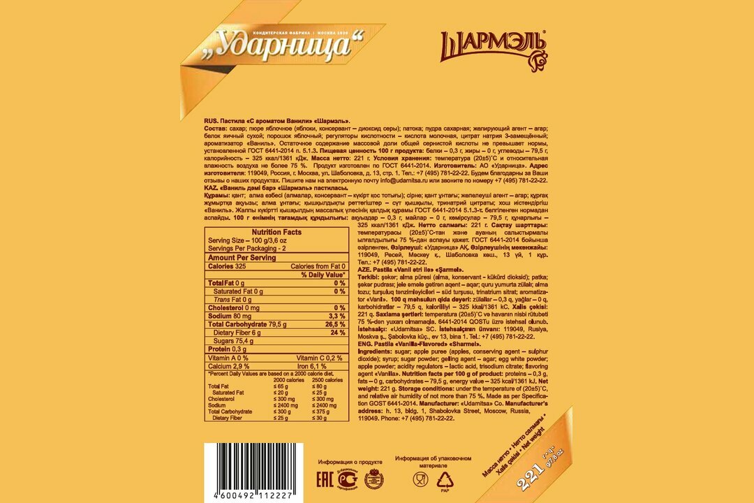 Пастила Шармэль Ванильная кор. 221г интересное: