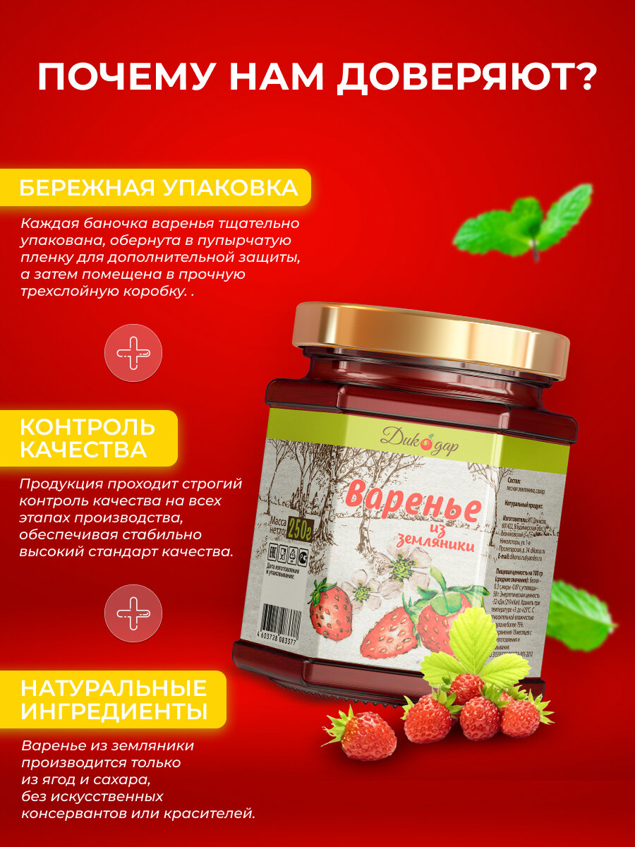 Варенье из лесной земляники 250 гр - 200 мл интересное: