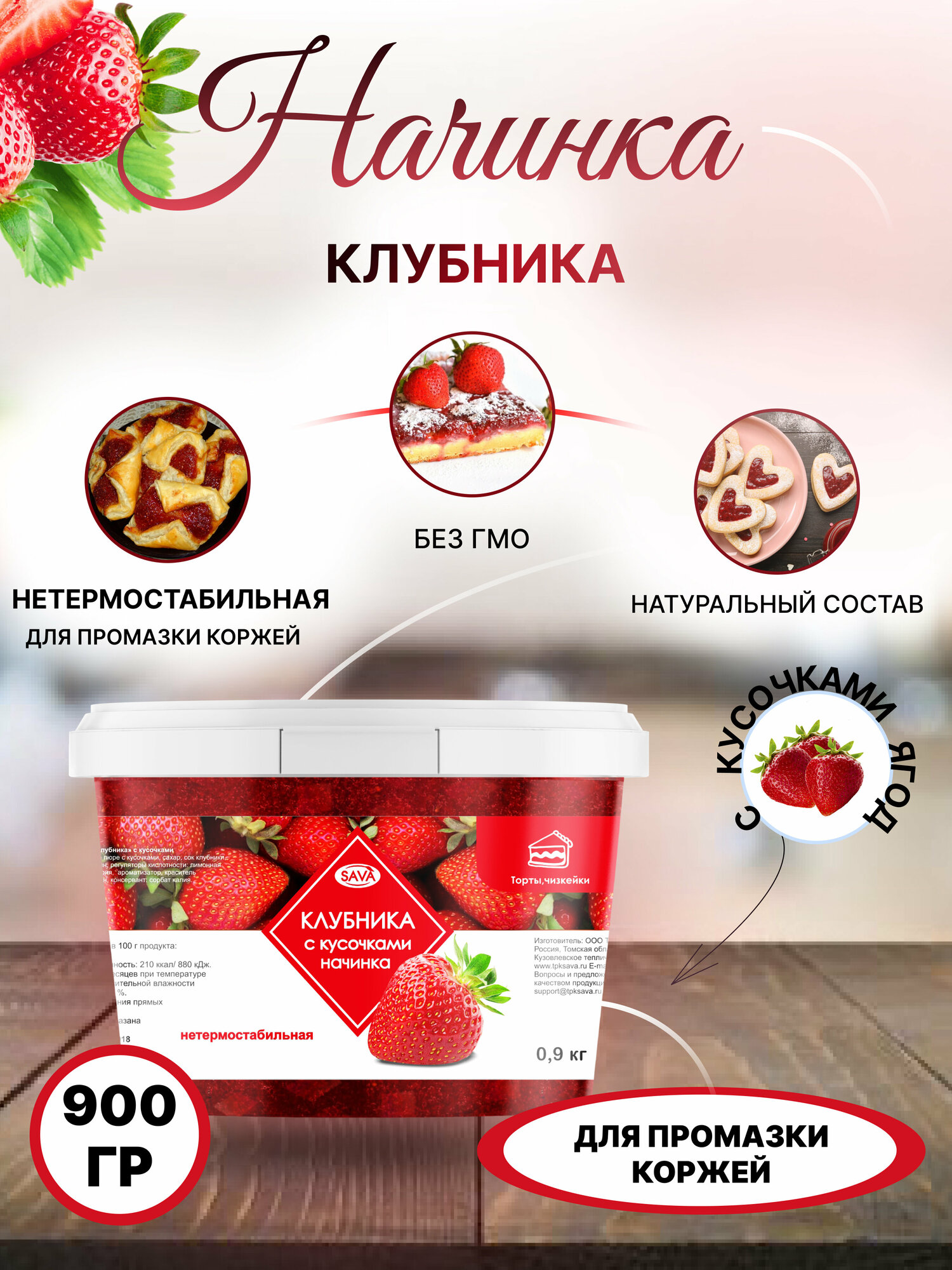 Начинка Клубника с кусочками нетермостабильная интересное: