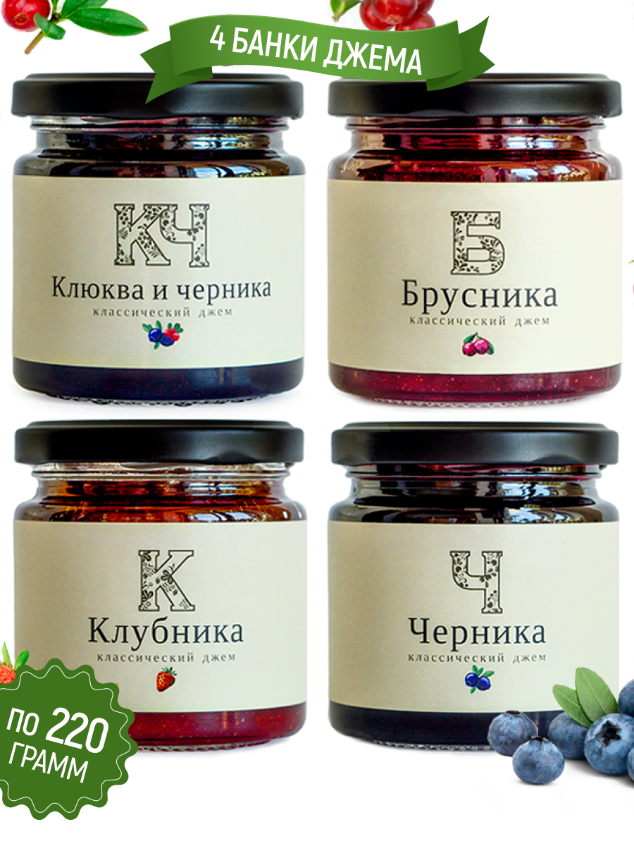 | Подробная комплектация | Джем "Русский лес" Брусничный 220 г, Джем "Русский лес" Клубничный 220 г, Джем "Русский лес" Черничный 220 г, Джем "Русский лес" Домашний клюквенно-черничный 220 г. |