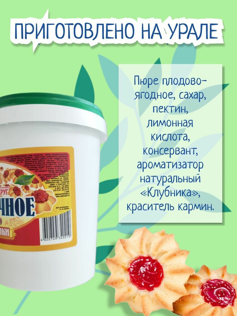 | Состав | Пюре плодово-ягодное, сахар, загуститель –пектин(Е440), регулятор кислотности - лимонная кислота (Е330), консервант- сорбат калия, ароматизатор натуральный «Клубника», краситель кармин. |
