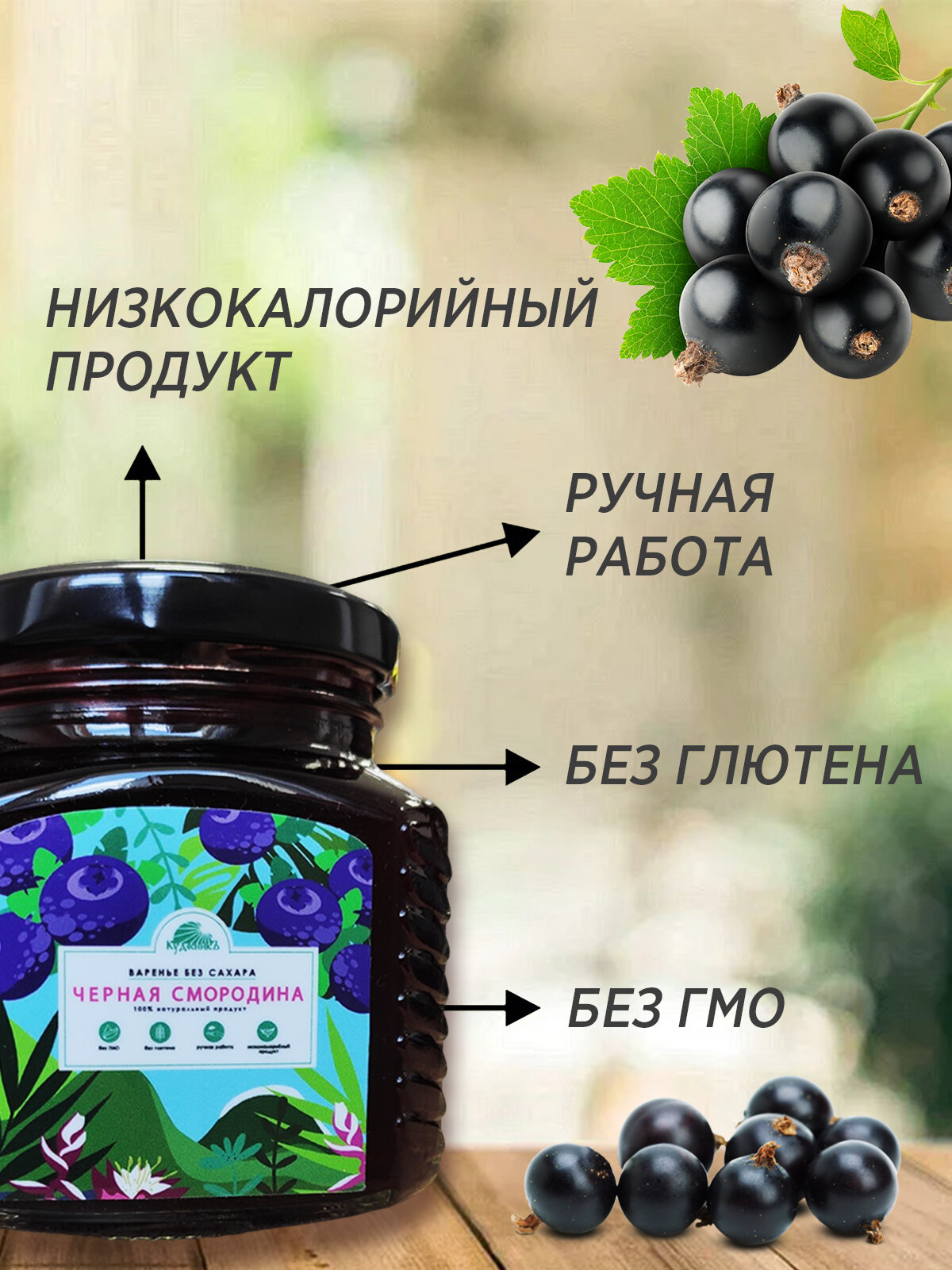 Варенье без сахара Черная смородина, Кудесникъ, 300 г