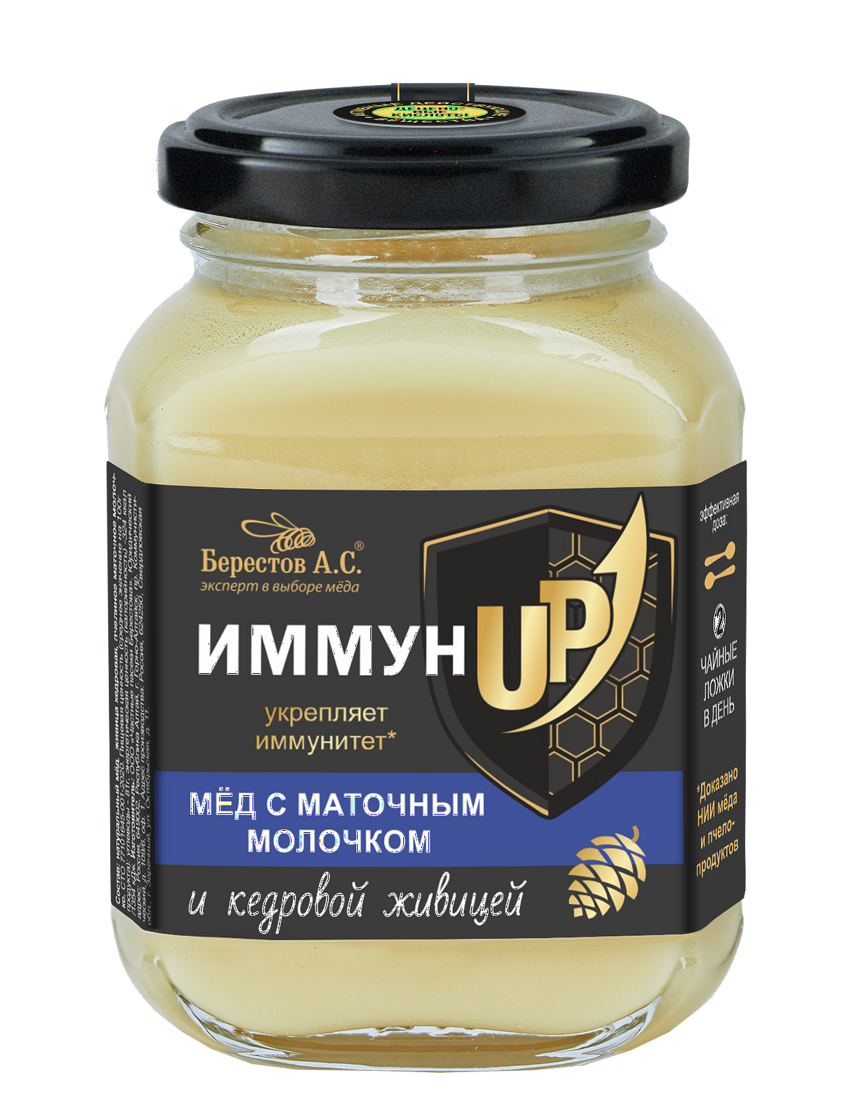 Мёд натуральный без сахара "ИммунUP" с маточным молочком и кедровой живицей, Берестов А.С., 200 г интересное: