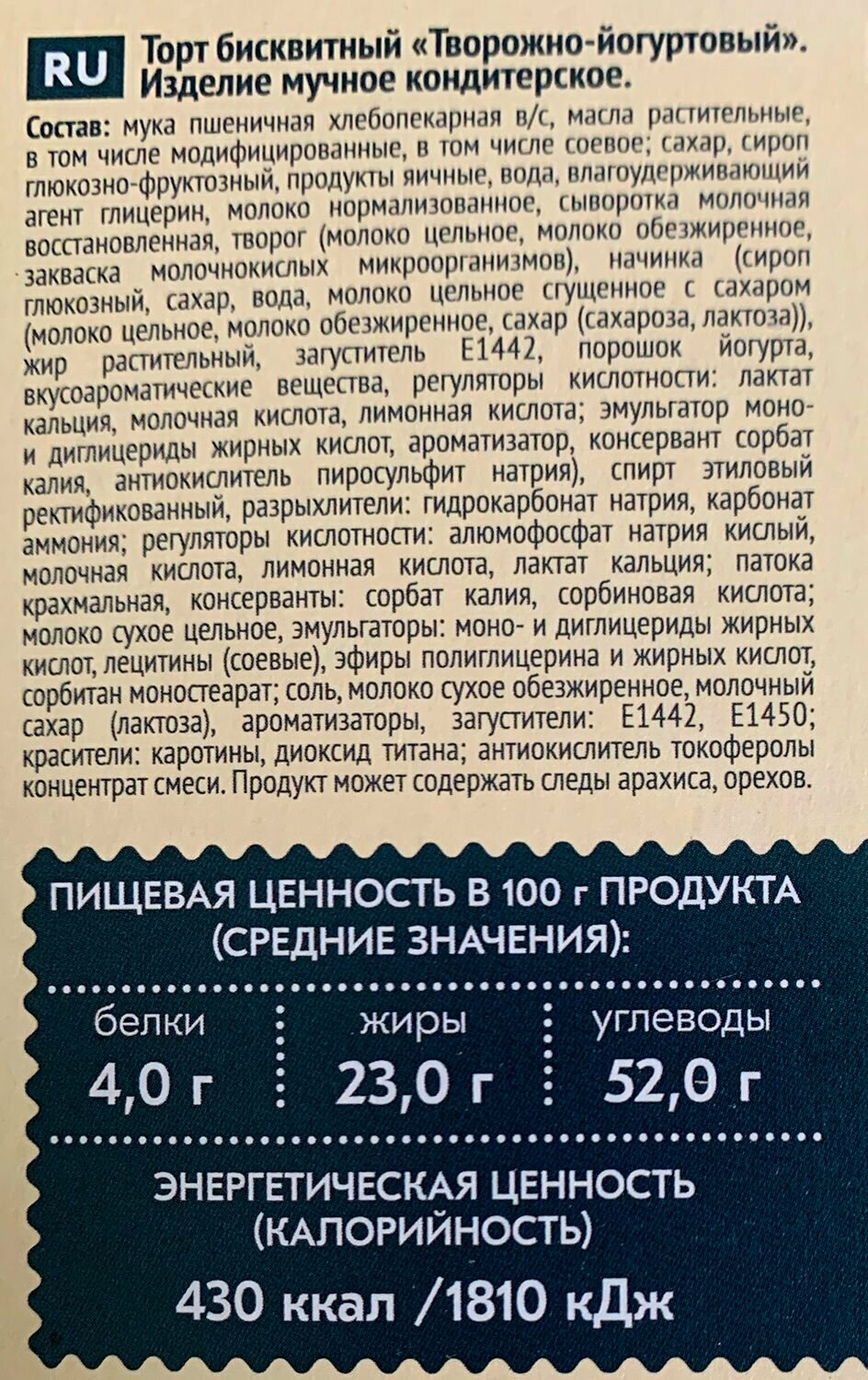 Торт "Творожно-йогуртовый" 350г х 3шт интересное: