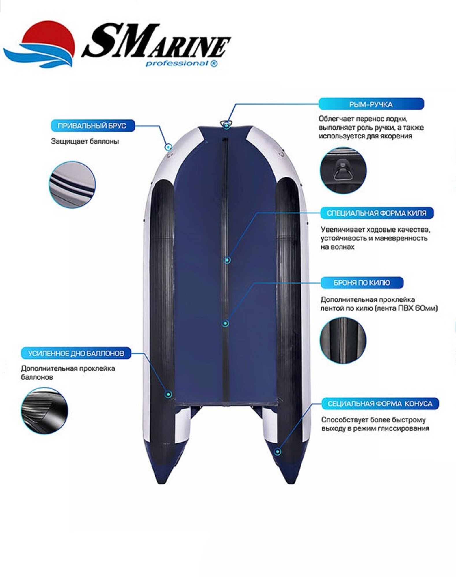 Надувная лодка ПВХ SMARINE SDP MAX серый синий 380 моторно-гребная интересное: