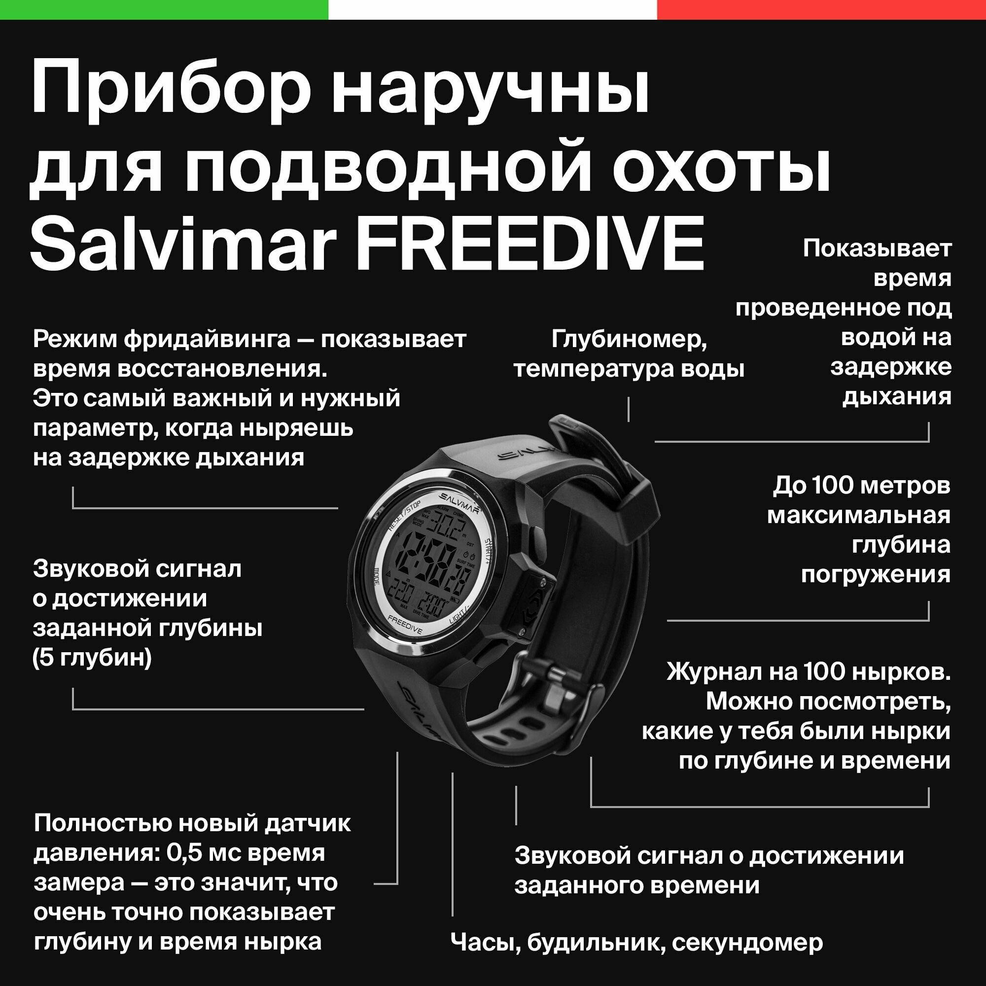 Часы для подводной охоты и фридайвинга SALVIMAR FREEDIVE интересное: