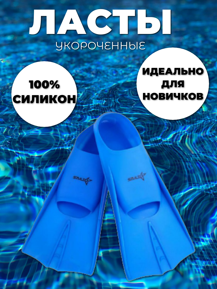 Ласты укороченные, силиконовые, размер S (33-35), синий цвет интересное: