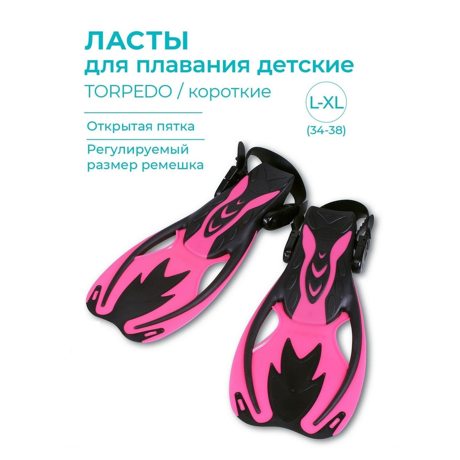 Ласты пластиковые с резиновыми вставками короткие открытая пятка INDIGO TORPEDO детские IN068 Розовый L-XL интересное: