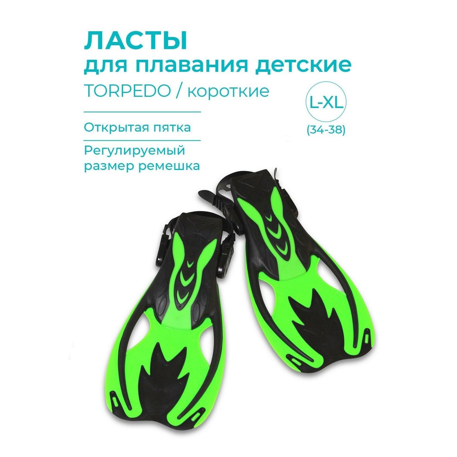 Ласты пластиковые с резиновыми вставками короткие открытая пятка INDIGO TORPEDO детские IN068 Зеленый L-XL интересное: