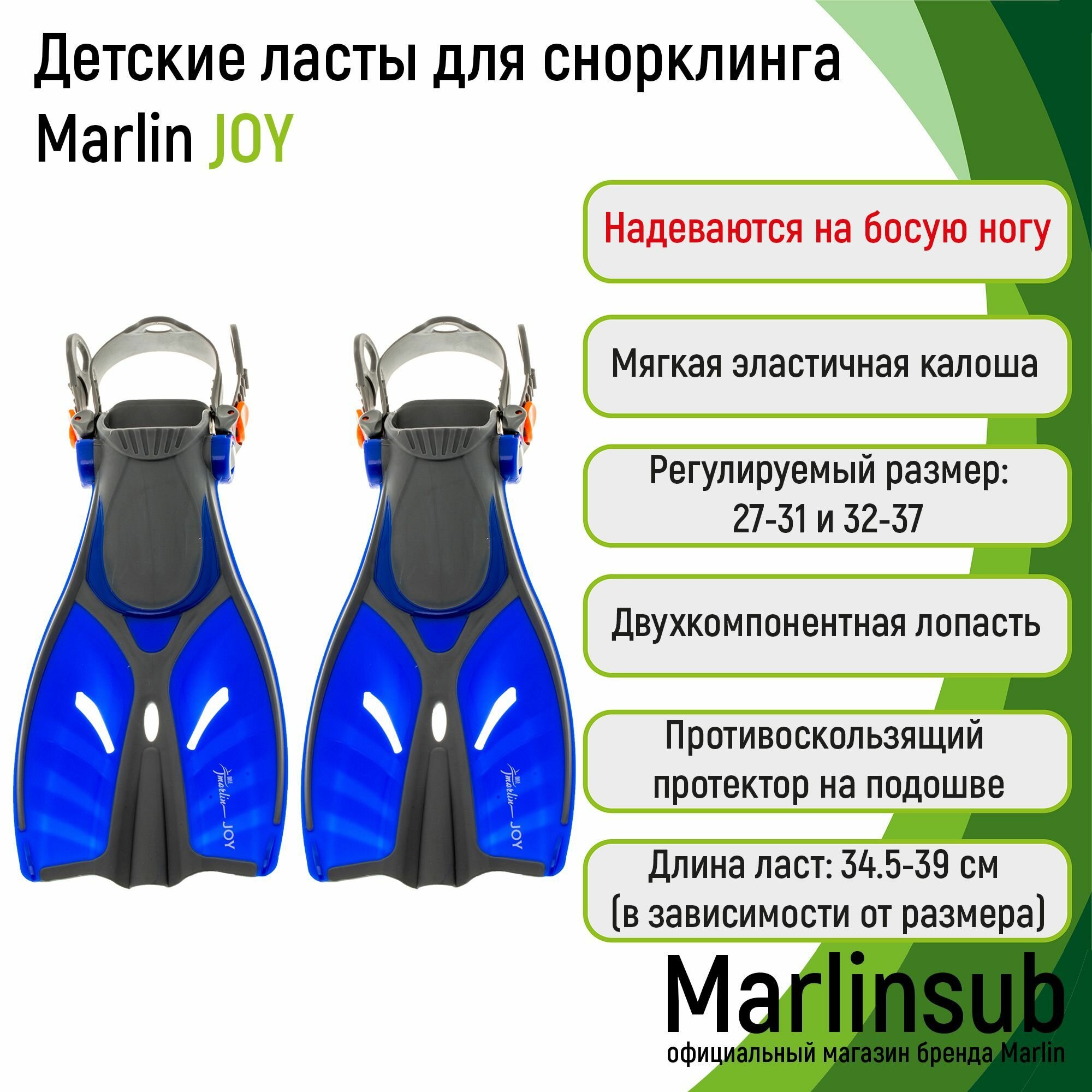 Ласты детские Marlin JOY blue S/M 27-31 интересное: