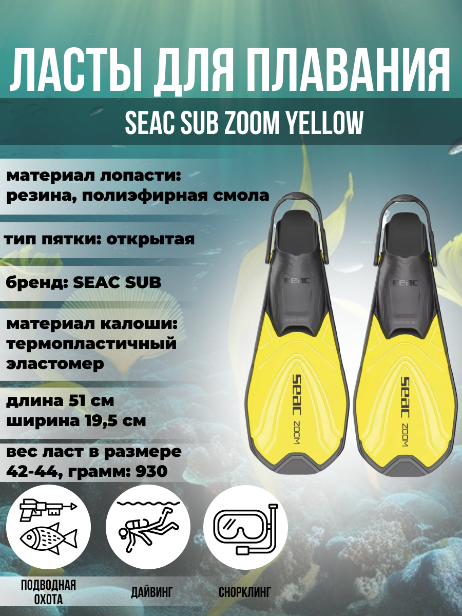 Ласты для плавания SEAC SUB ZOOM YELLOW, р-р L-XL 45-47 интересное: