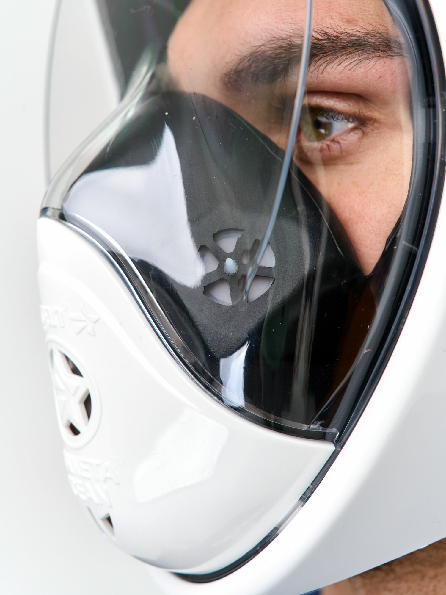 Купить Полнолицевая маска для подводного плавания с трубкой SARGAN PLANETA OCEAN размер L-XL черный/белый