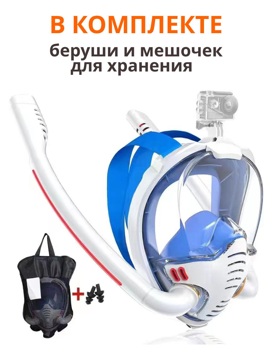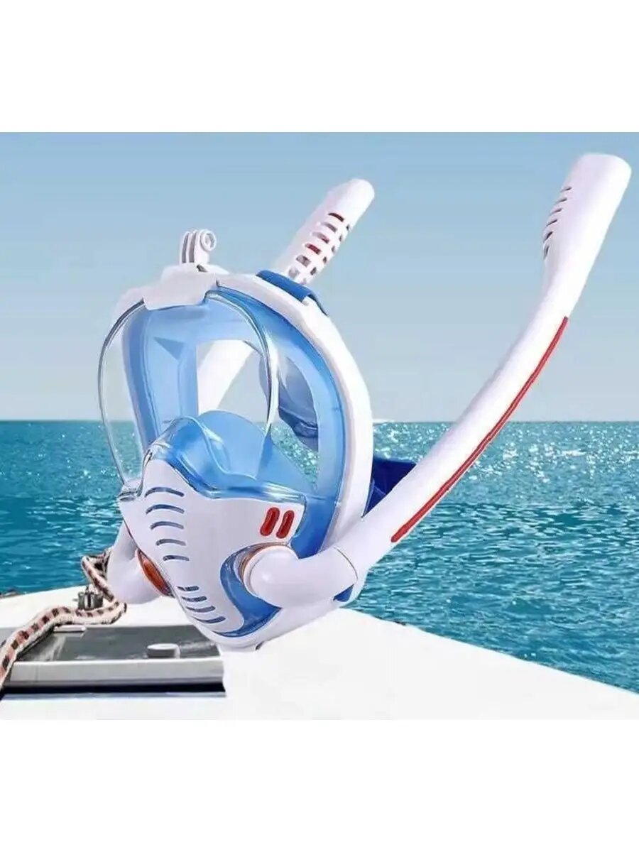 Маска для плавания и снорклинга с двумя трубками, бело-синяя, размер L/XL интересное:
