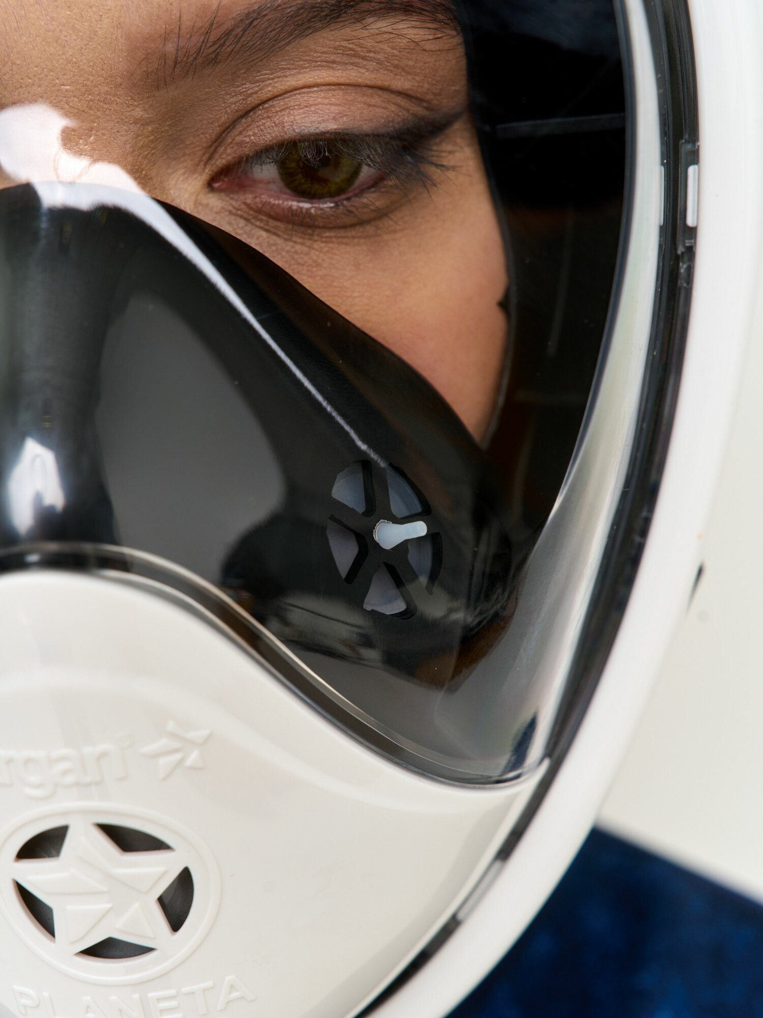 Полнолицевая маска для подводного плавания с трубкой SARGAN PLANETA OCEAN размер S-M белый-синий
