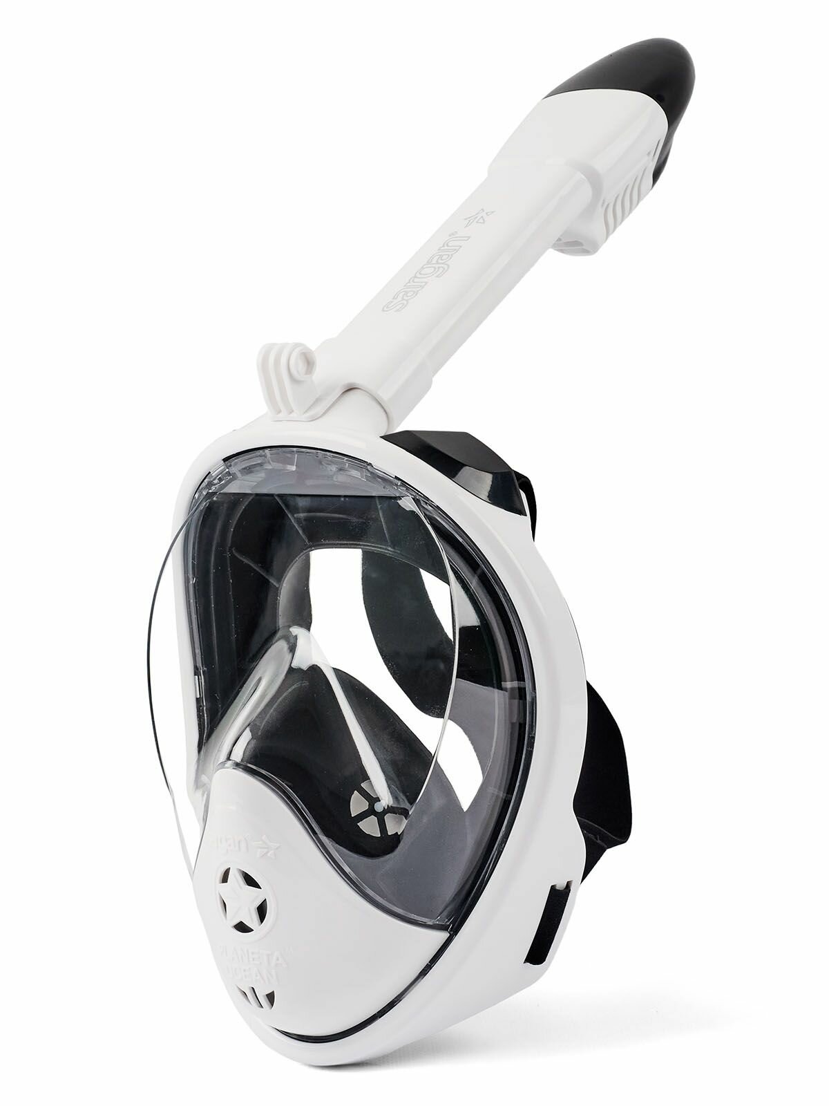 Купить Полнолицевая маска для подводного плавания с трубкой SARGAN PLANETA OCEAN размер S-M черный/белый