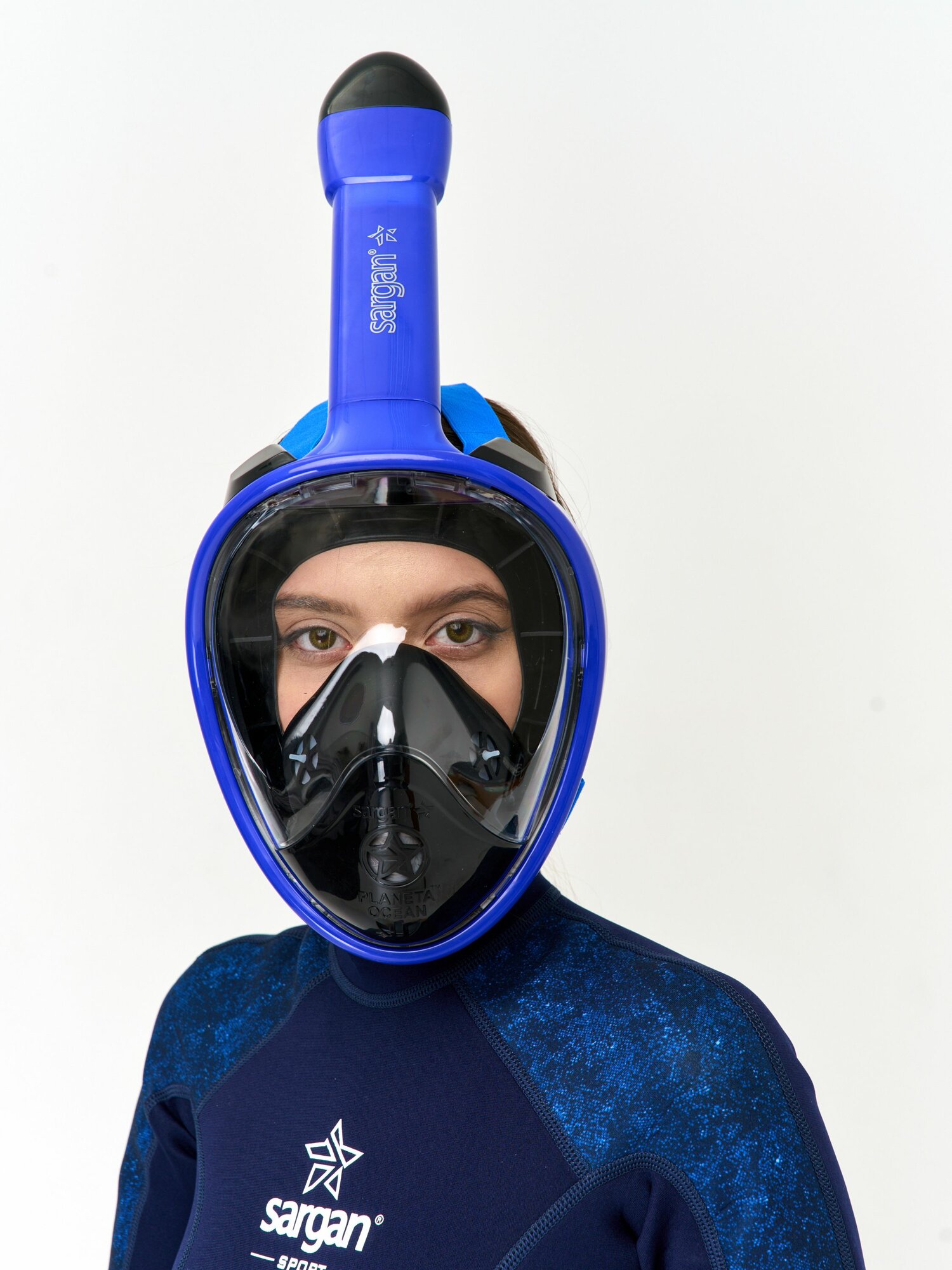СохранитьПолнолицевая маска для подводного плавания с трубкой SARGAN PLANETA OCEAN размер S-M синий-черный/прозрачный интересное: