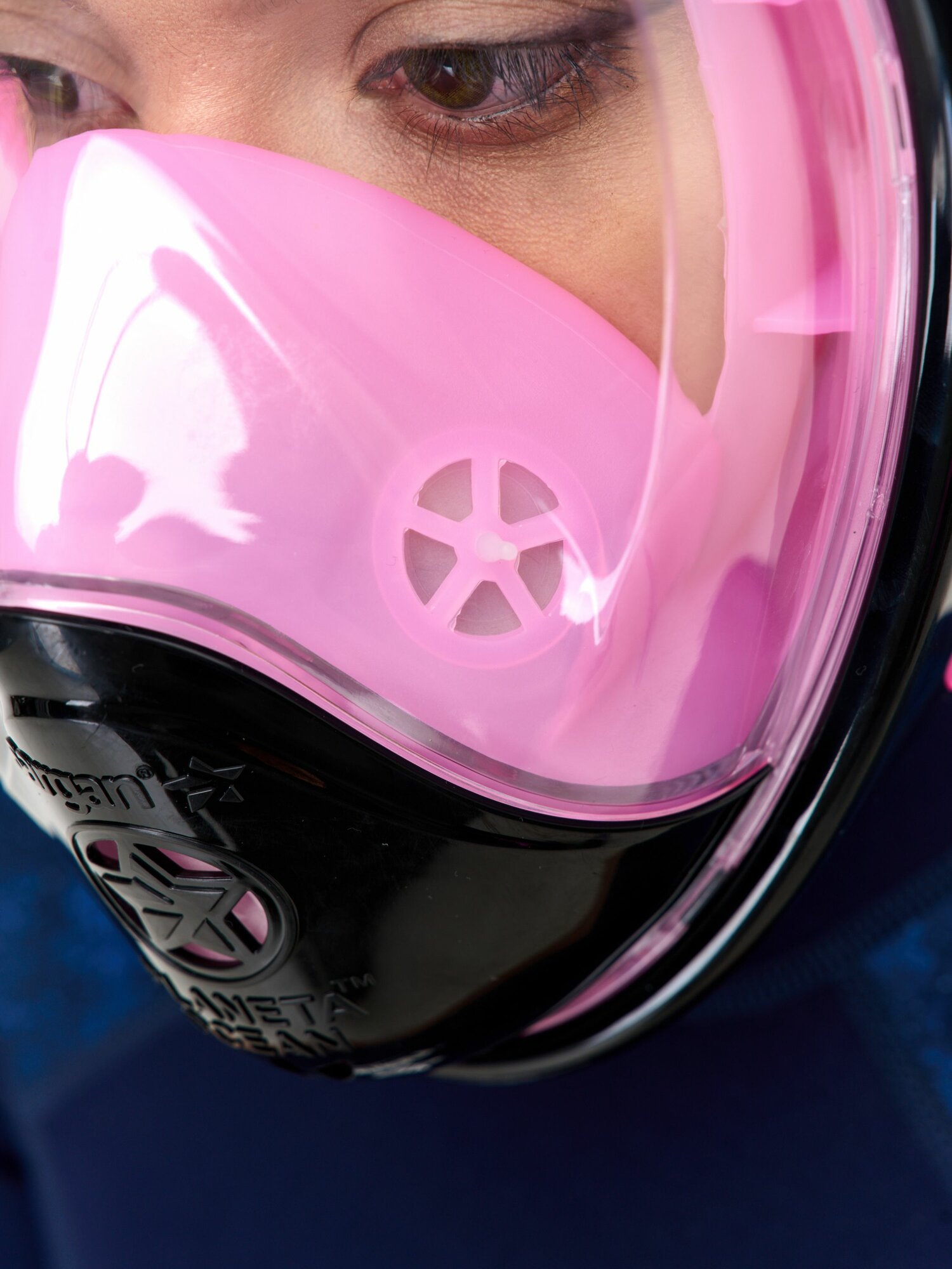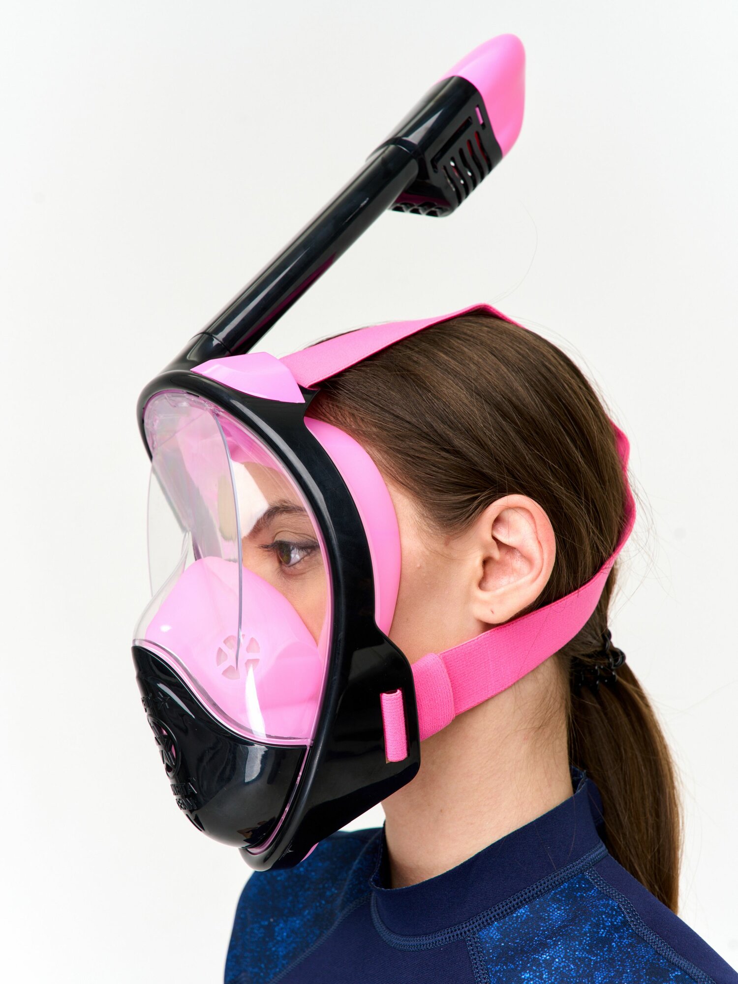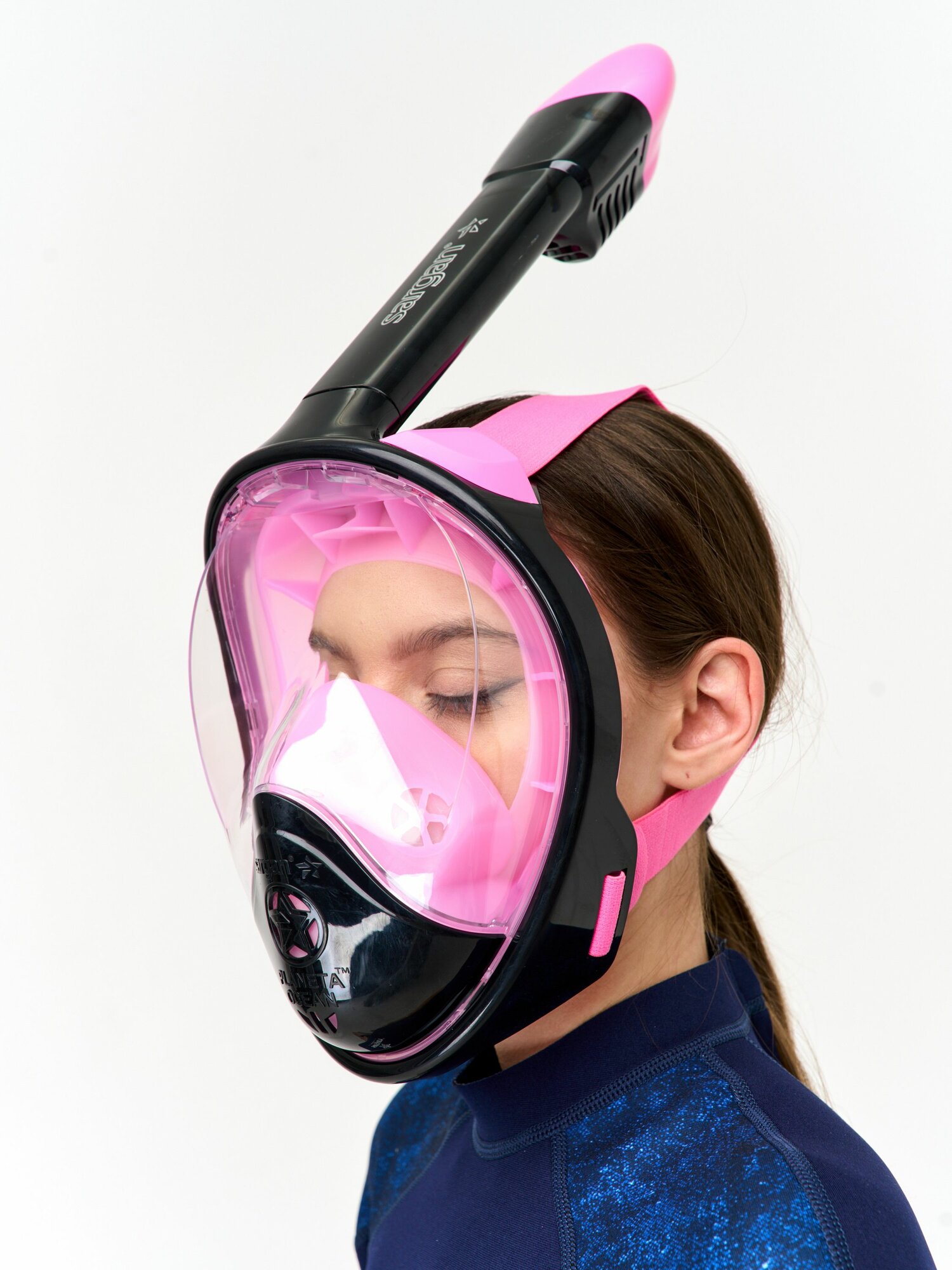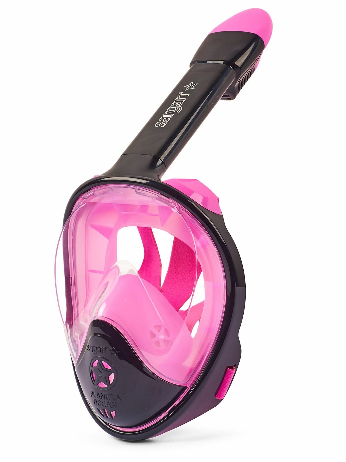 Купить Полнолицевая маска для подводного плавания с трубкой SARGAN PLANETA OCEAN размер S-M черный/розовый