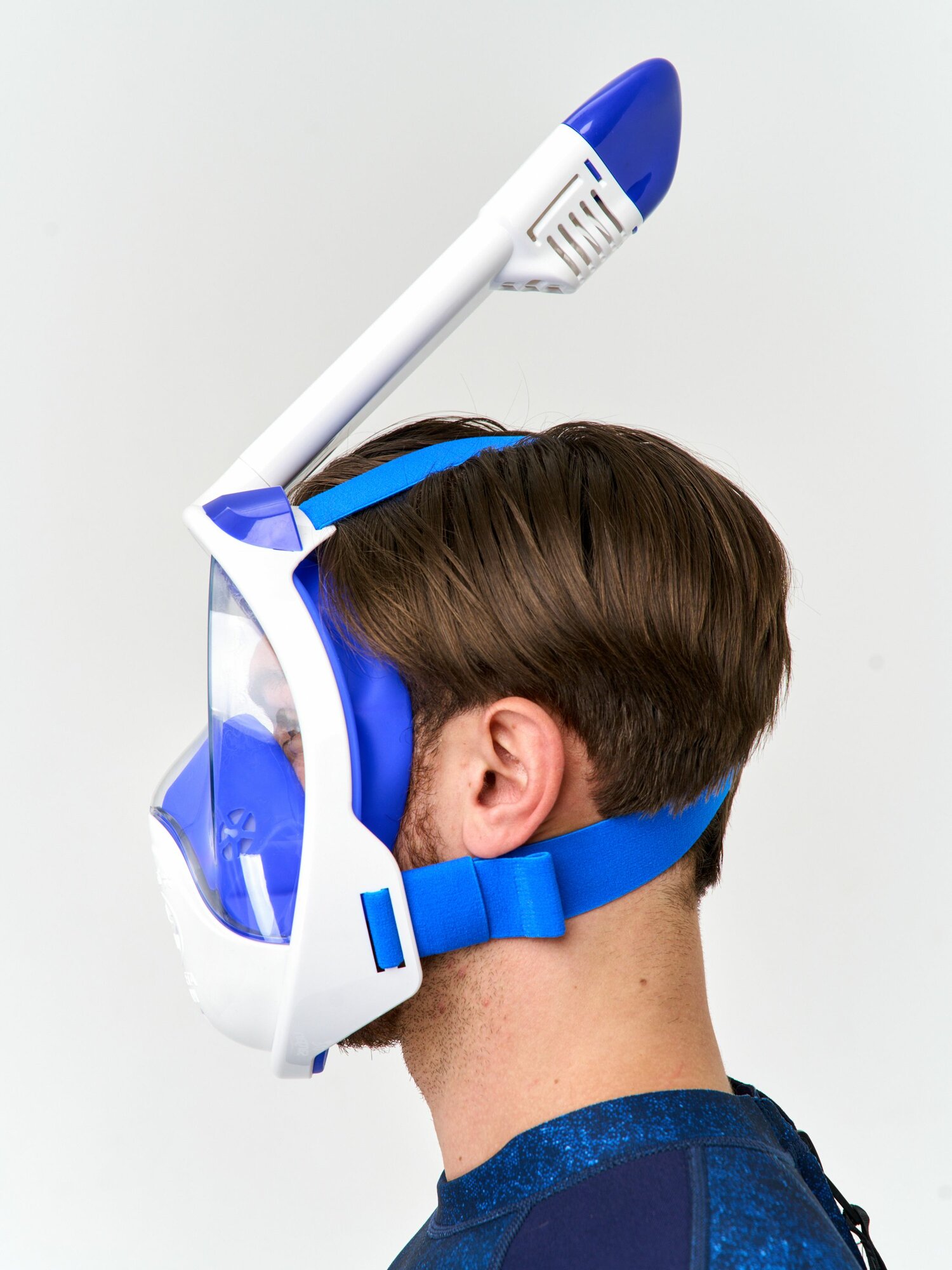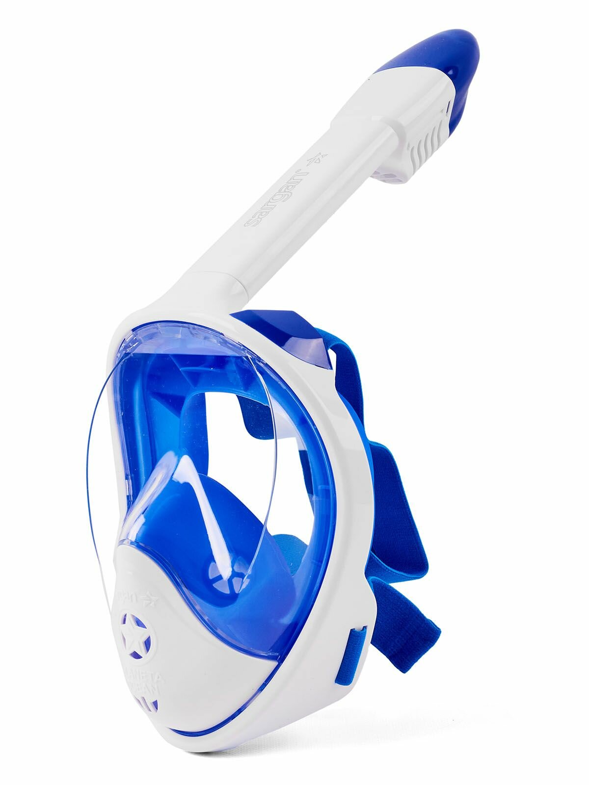 Купить Полнолицевая маска для подводного плавания с трубкой SARGAN PLANETA OCEAN размер S-M белый-синий