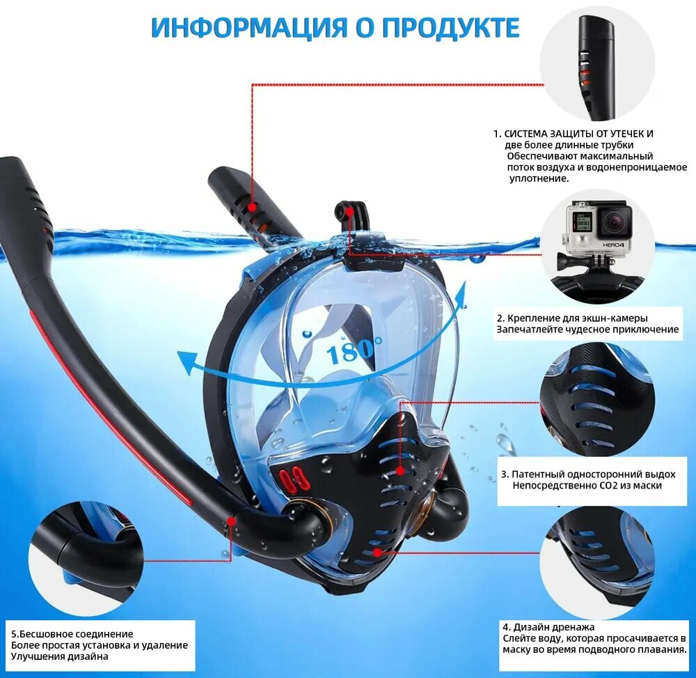 Ниже Вы можете прочитать отзывы на Подводная полнолицевая маска для снорклинга с креплением для экшн-камеры для плавания, ознакомится с подробными характеристиками, посмотреть интересные обзоры и фотографии на Подводная полнолицевая маска для снорклинга с креплением для экшн-камеры для плавания.