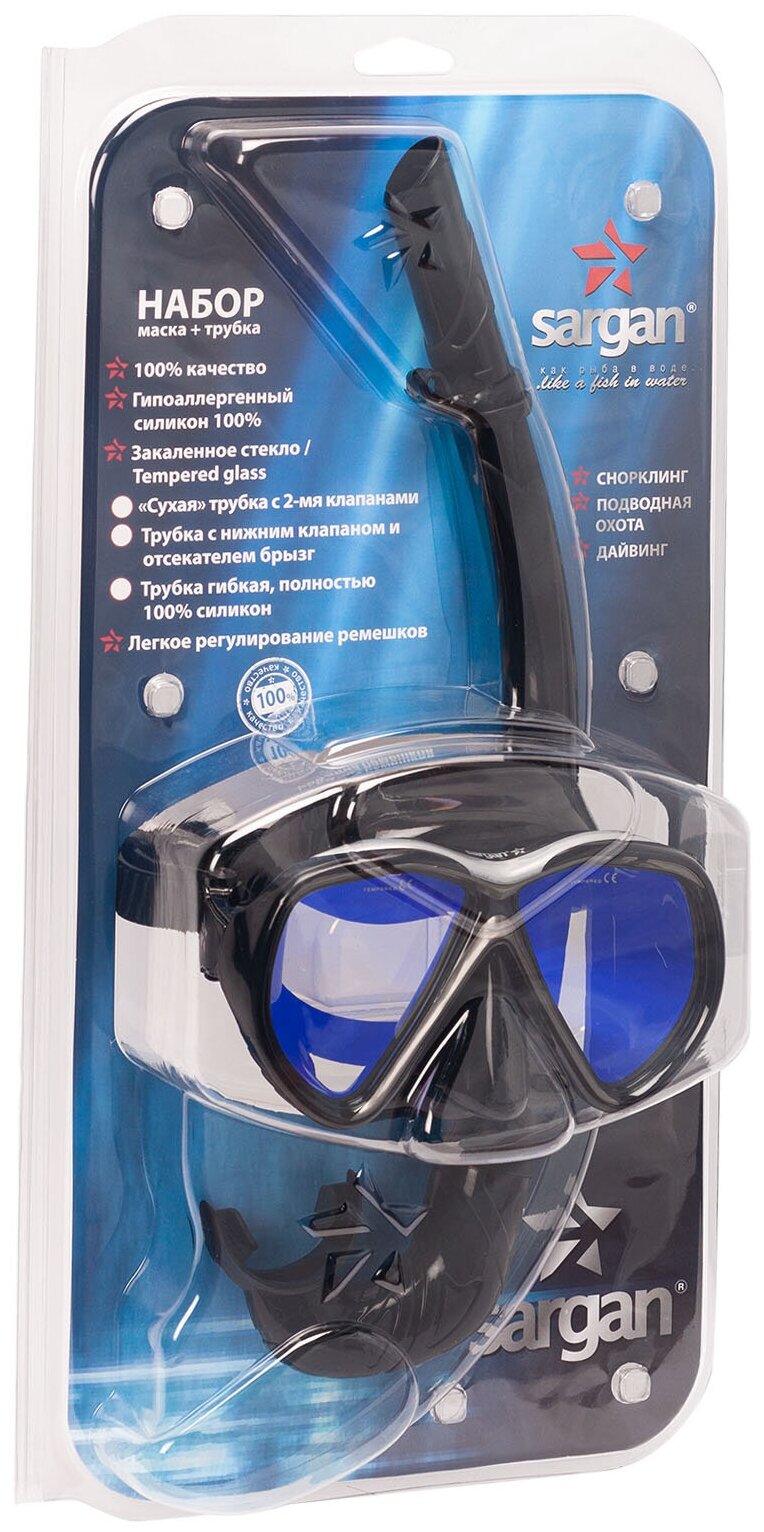 Набор для подводного плавания SARGAN вуокса просветленные линзы (Маска Вуокса/ Трубка Калан) интересное: