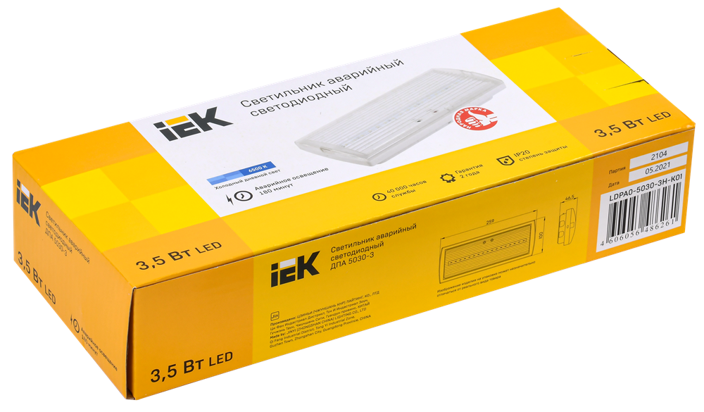 Светильник аварийный светодиодный ДПА-5031 3ч постоянный/непостоянный Ni-CD IP20 | код. LDPA0-5031-3-20-K01 | IEK ( 1шт. )