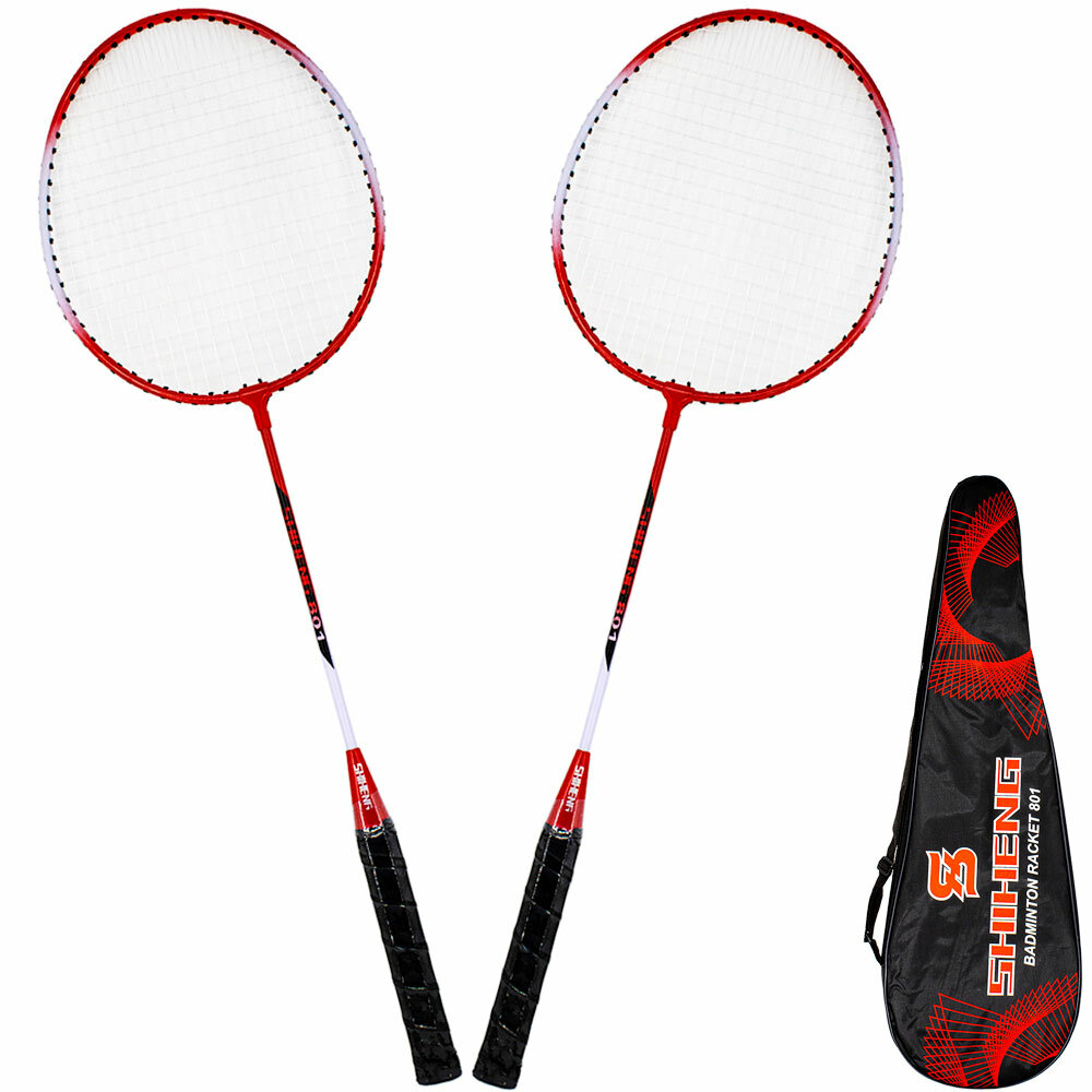 Купить Бадминтон КНР Shiheng, 2 ракетки, метал, черно-красный, чехол (141-19U)