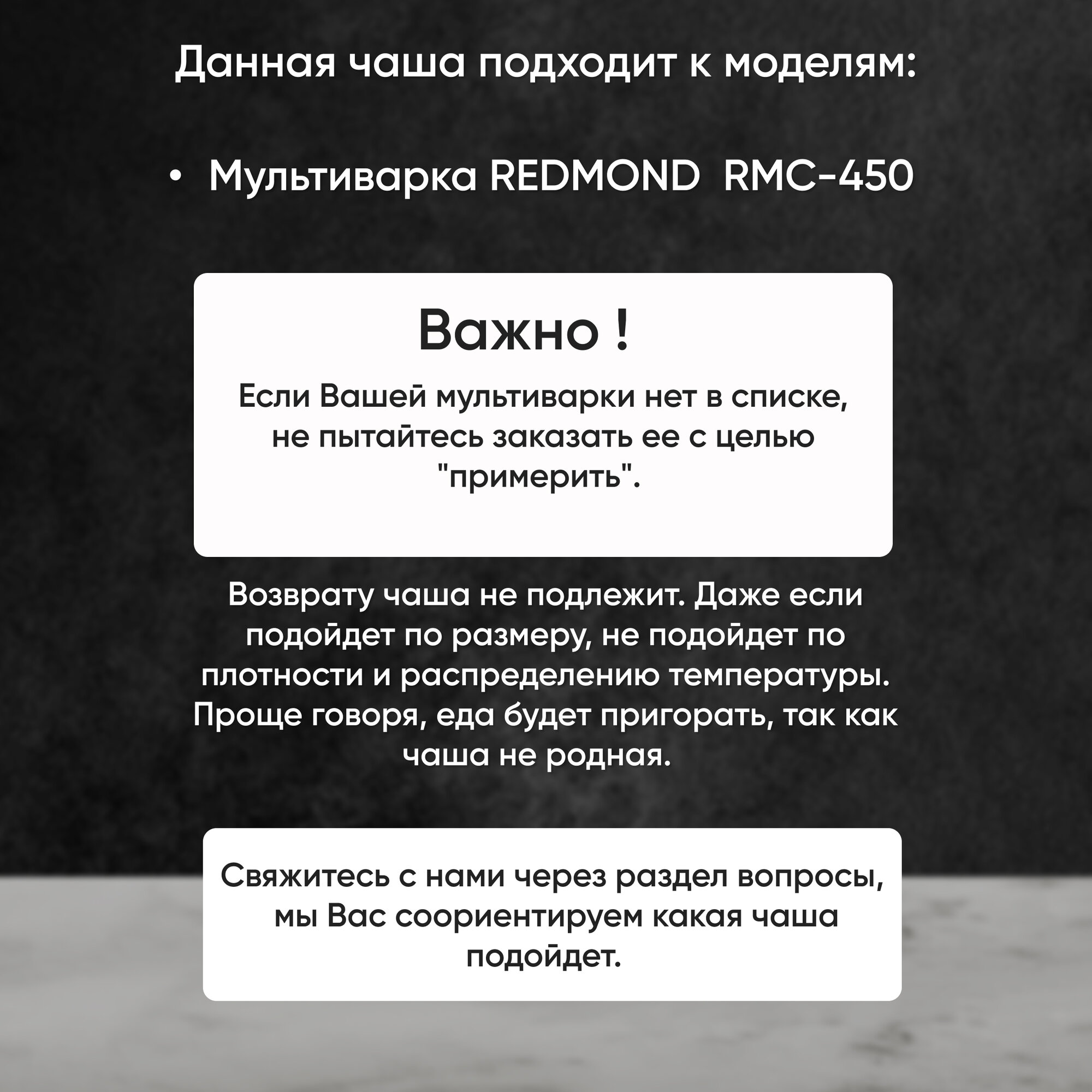 | Плюсы: | хорошая запасная чаша для мультиварки RMC-450 |