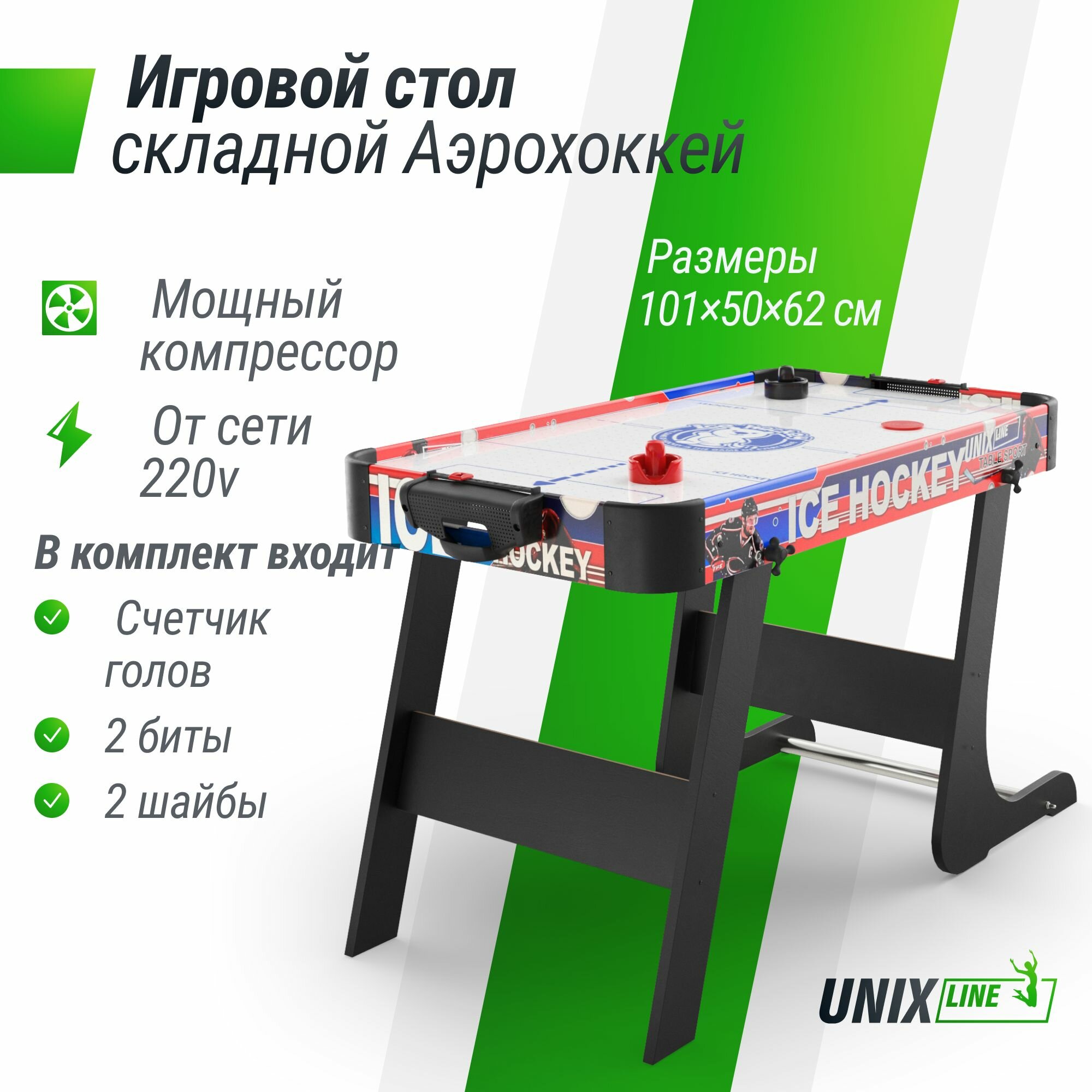 Игровой стол складной UNIX Line Мини Аэрохоккей (101х50 cм) интересное: