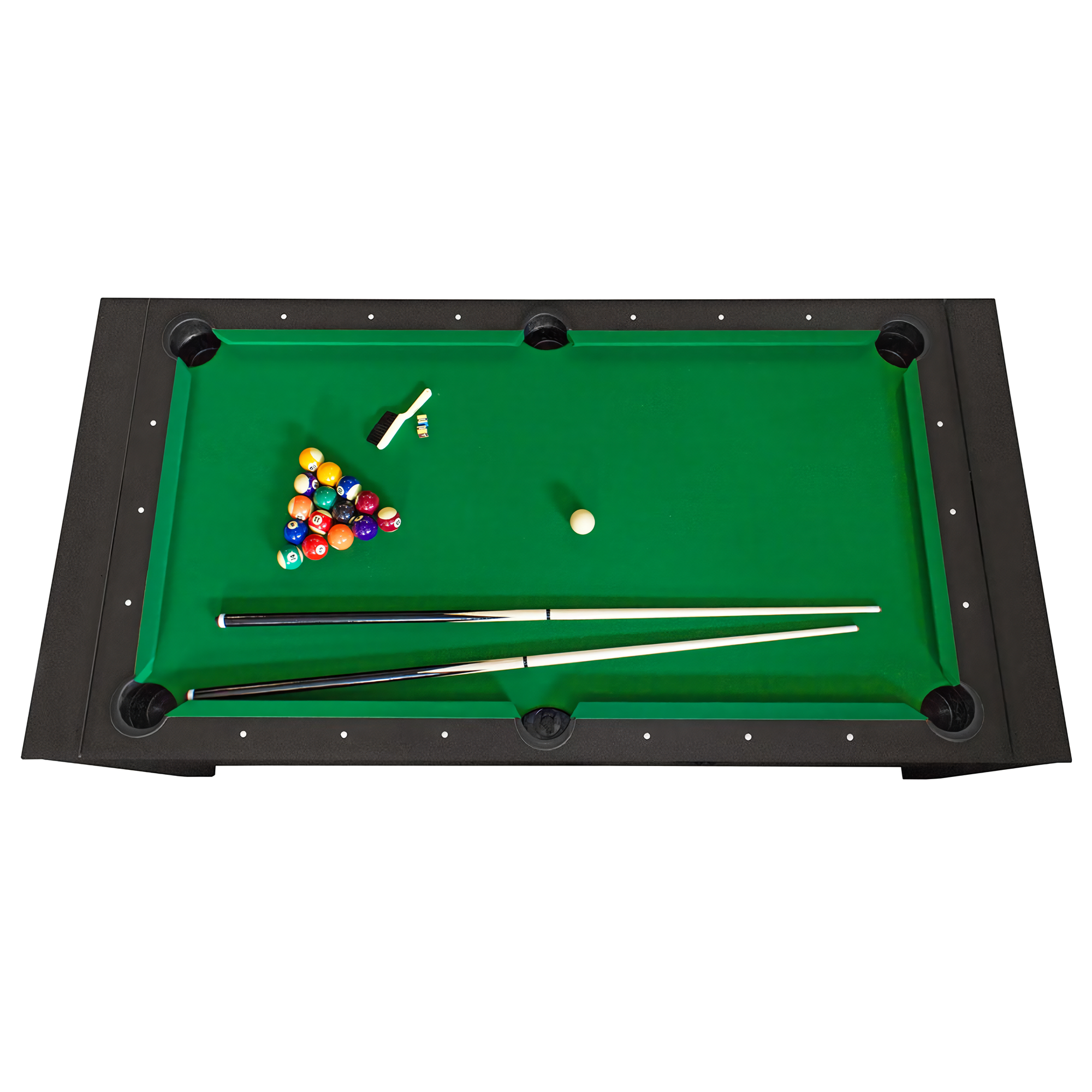 | Подробная комплектация | Набор шаров для пула - диаметр 57,2 мм Кий цельный - 2 шт, длина 146 см Мел - 2 шт Пластиковый треугольник - 1 шт Щетка для чистки сукна - 1 шт Биты - 4 шт Шайбы (62 мм) - 4 шт Ракетки - 2 шт Мячи - 2 шт Сетка |
