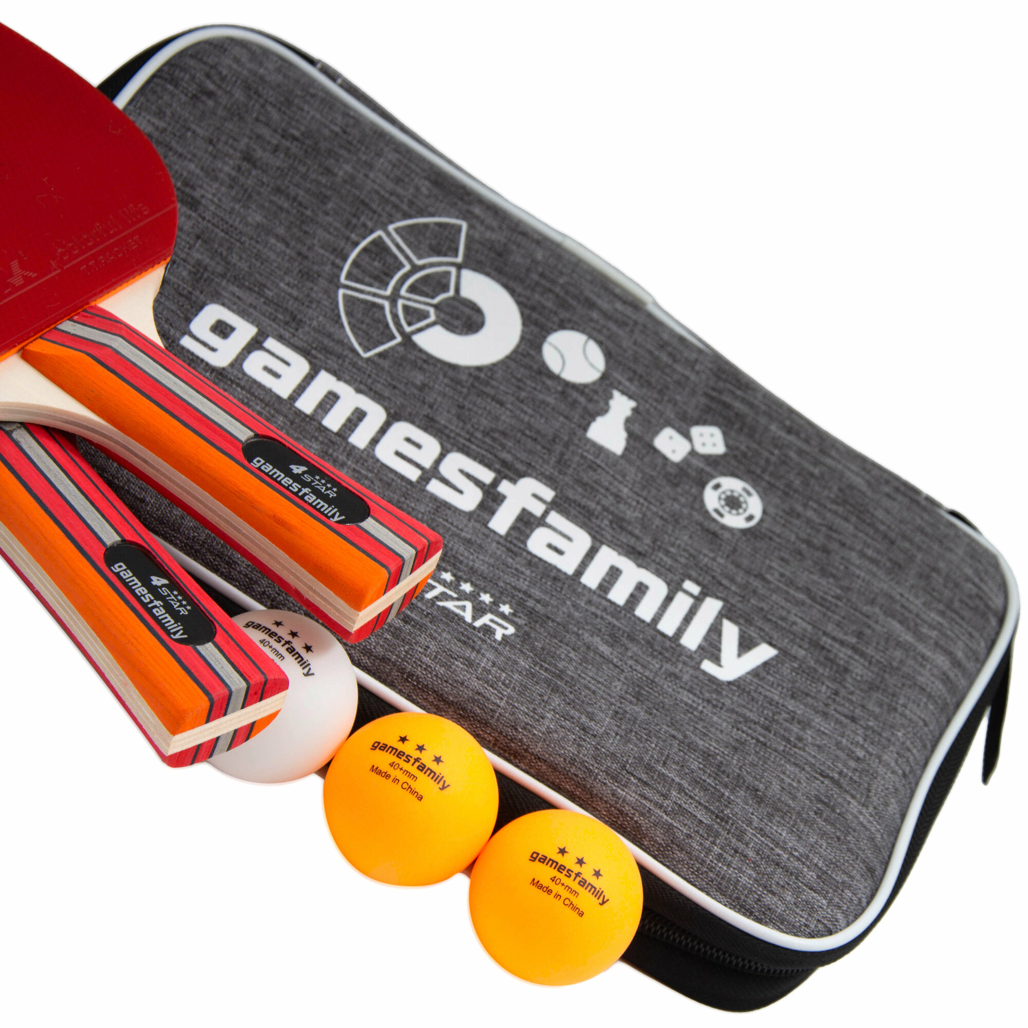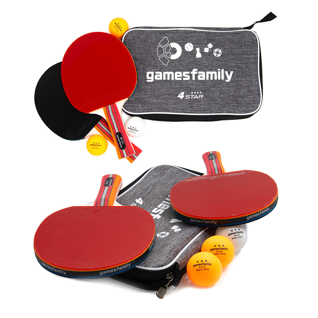 Купить Gamesfamily Полупрофессиональный набор для настольного тенниса: 2 теннисных ракетки 4 звезды, 3 белых мячика 40+мм и серая сумка-переноска с ручкой на молнии