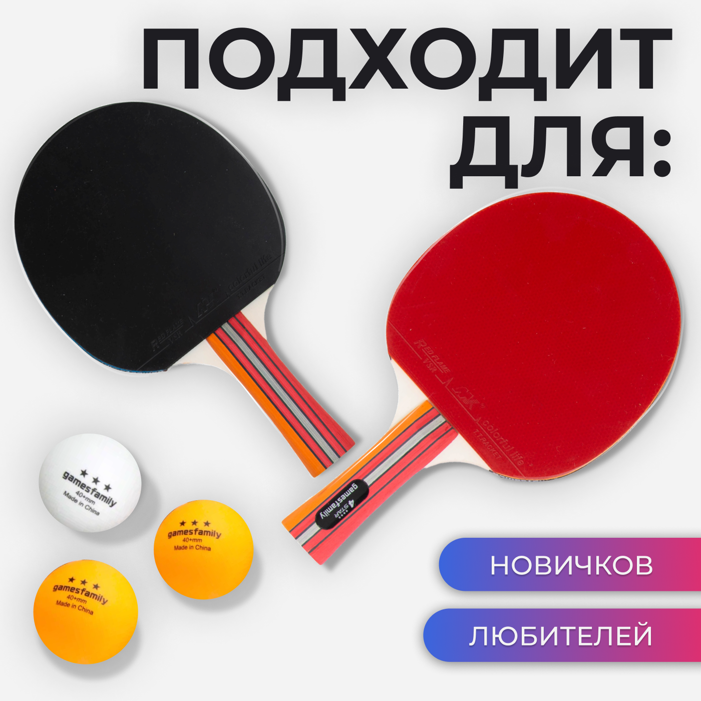 Ракетки для настольного тенниса Gamesfamily 2 полупрофессиональных ракетки, 3 белых мячика и чехол