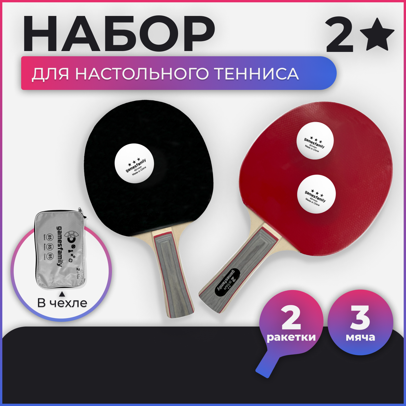 Ракетки для настольного тенниса Gamesfamily 2 полупрофессиональных ракетки, 3 белых мячика и чехол