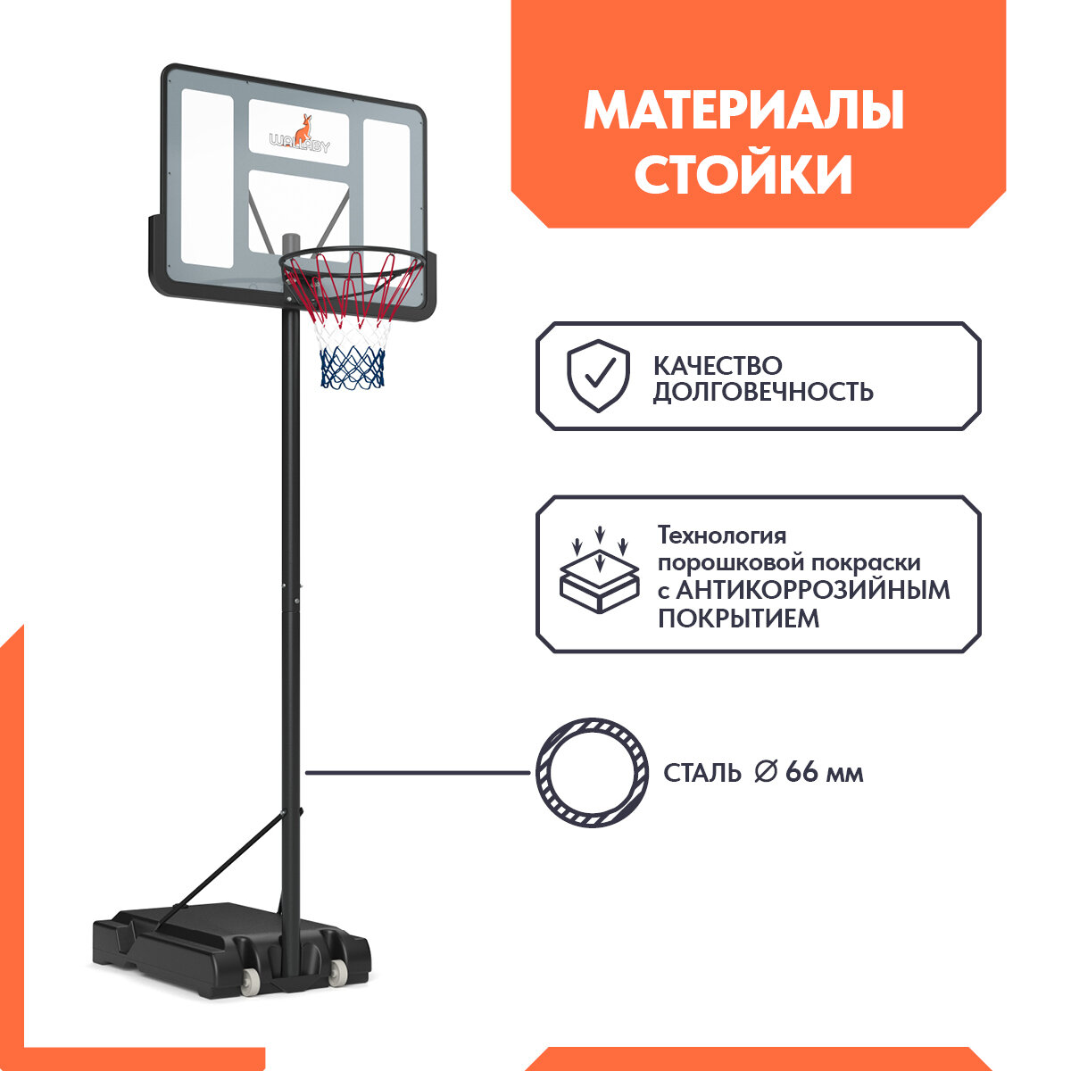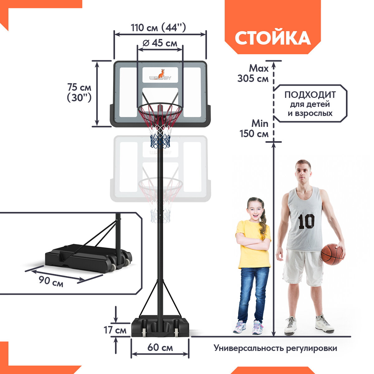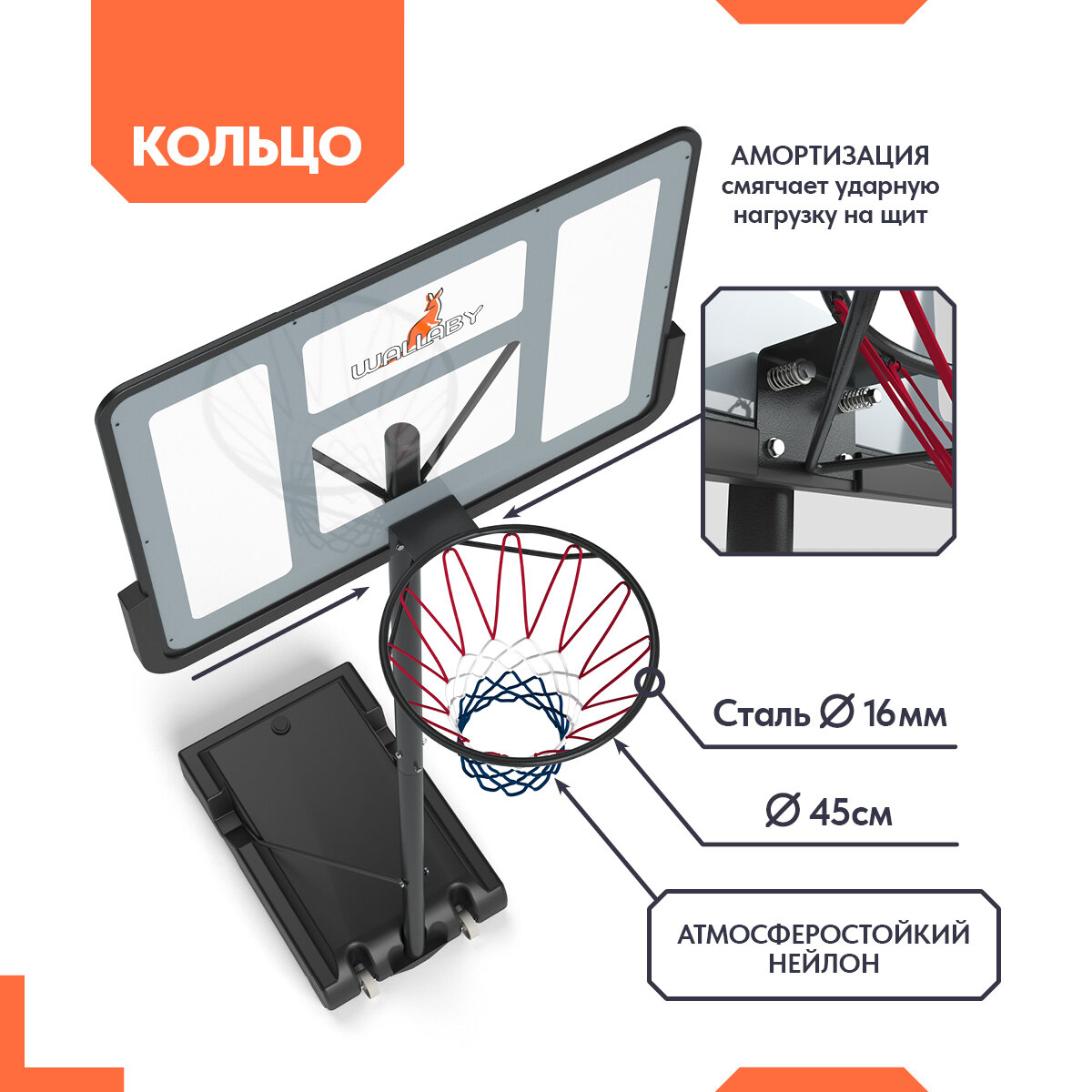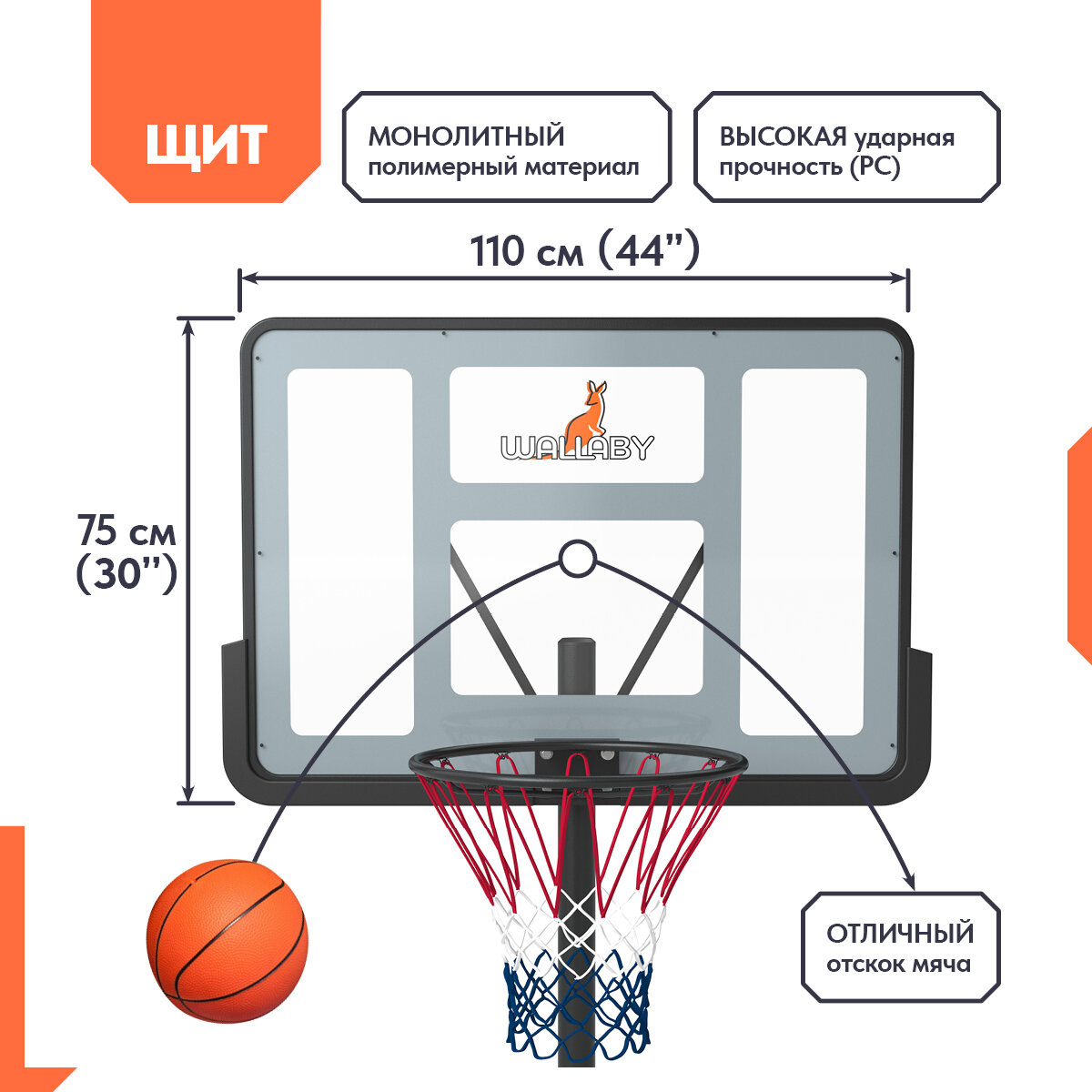 Баскетбольная стойка Wallaby Х100 (44") интересное: