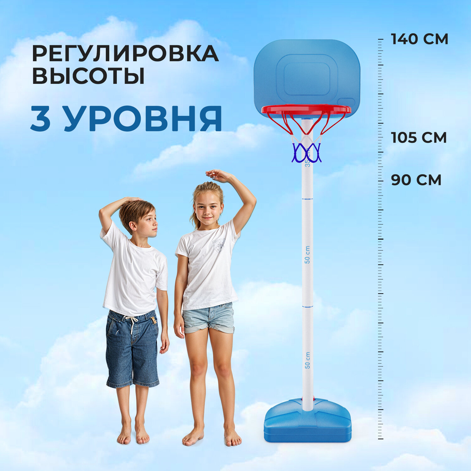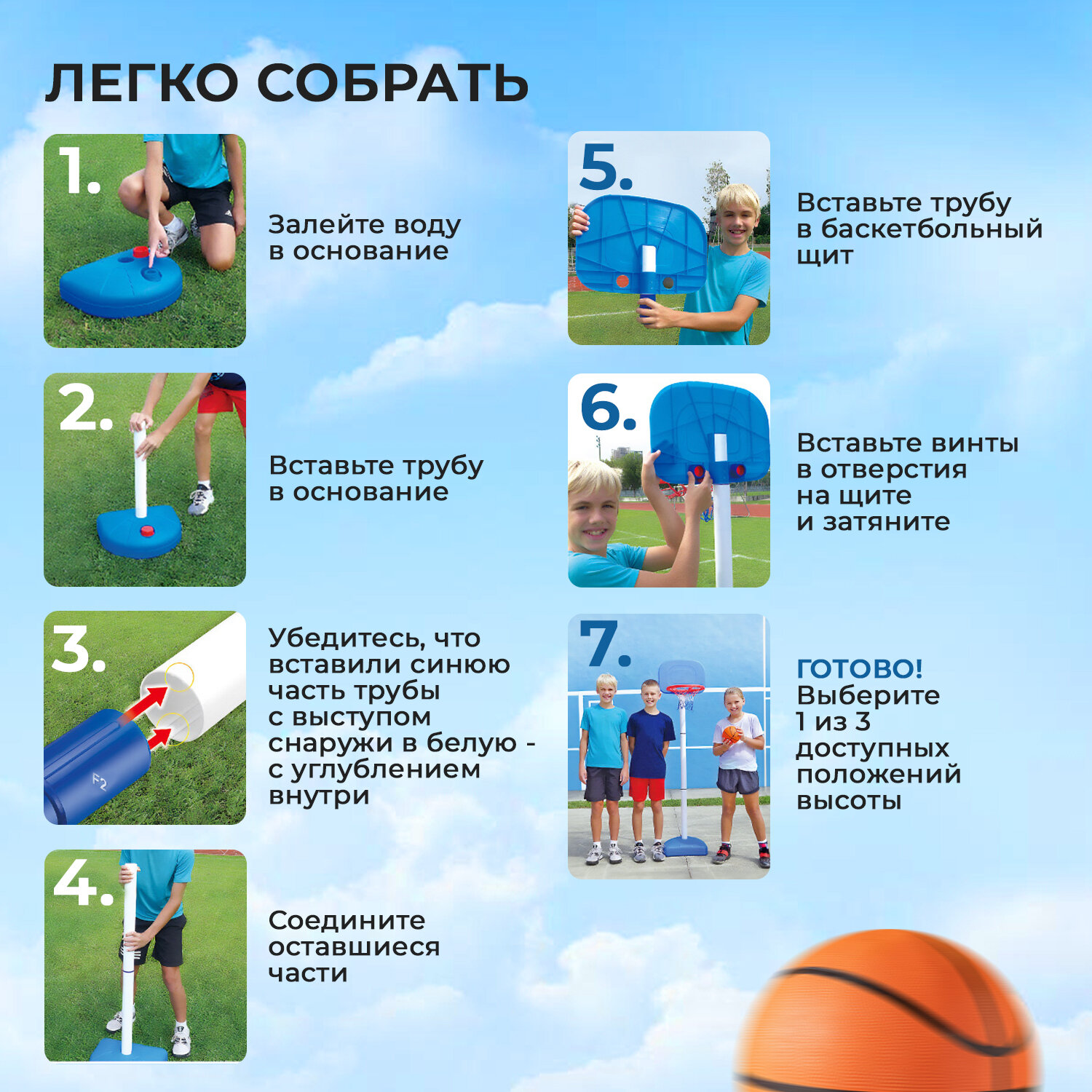 | Дополнительная информация | В комплекте 6” баскетбольный мяч, 8” насос Диапазон регулировки высоты от 90 до 140 см |