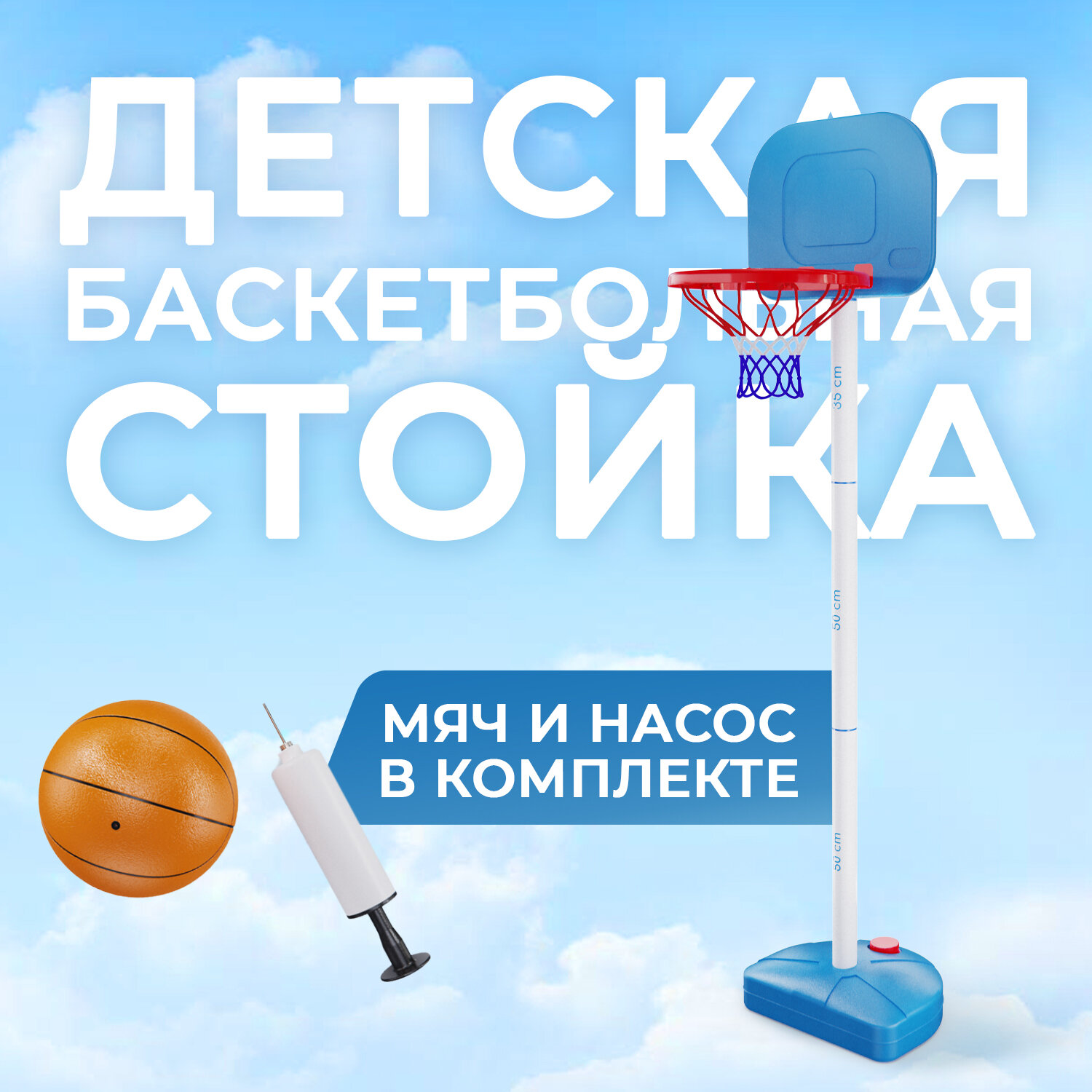 Детская мобильная баскетбольная стойка DFC / мяч и насос в комплекте интересное: