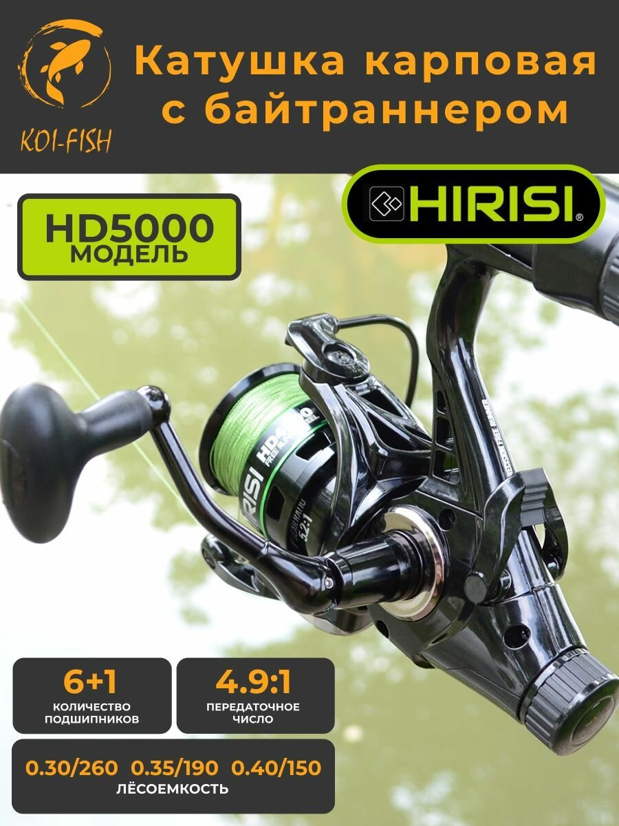 Катушка для рыбалки безынерционная с байтранером HIRISI HD 5000