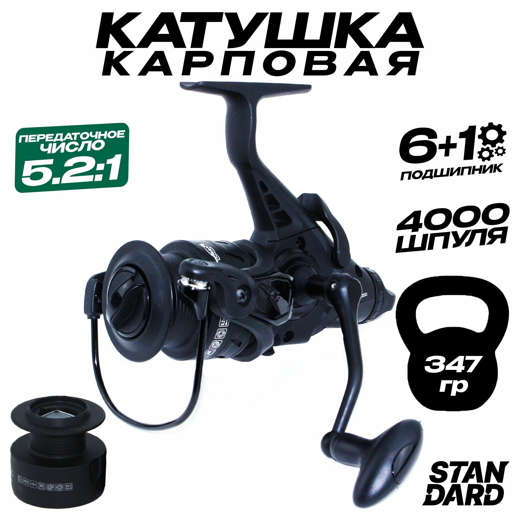 Катушка карповая ERAFISHING BJ 4000 с байтранером (6+1 подшипник), запасная шпуля в комплекте