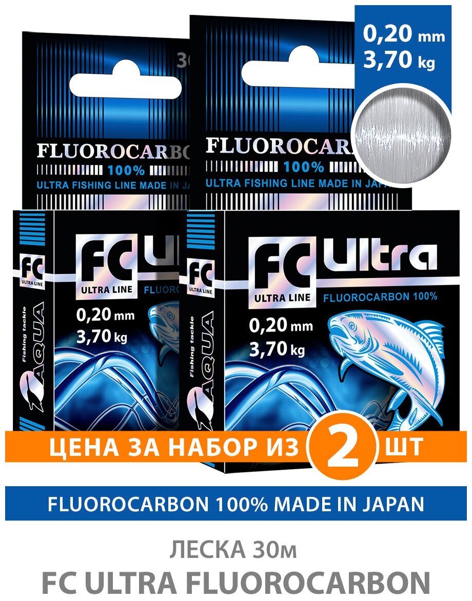 Купить Леска AQUA FC Ultra Fluorocarbon (флюорокарбон) 100% 0.20mm 30m 3.70kg прозрачный 2шт