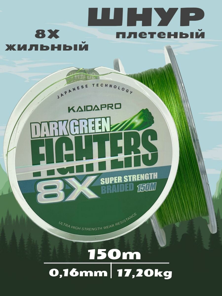 Шнур плетёный Dark Green Fighter 8X Kaida 0.18 мм тест 19,08 кг 150 м