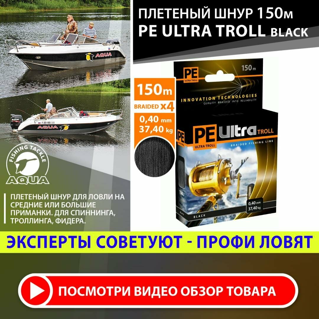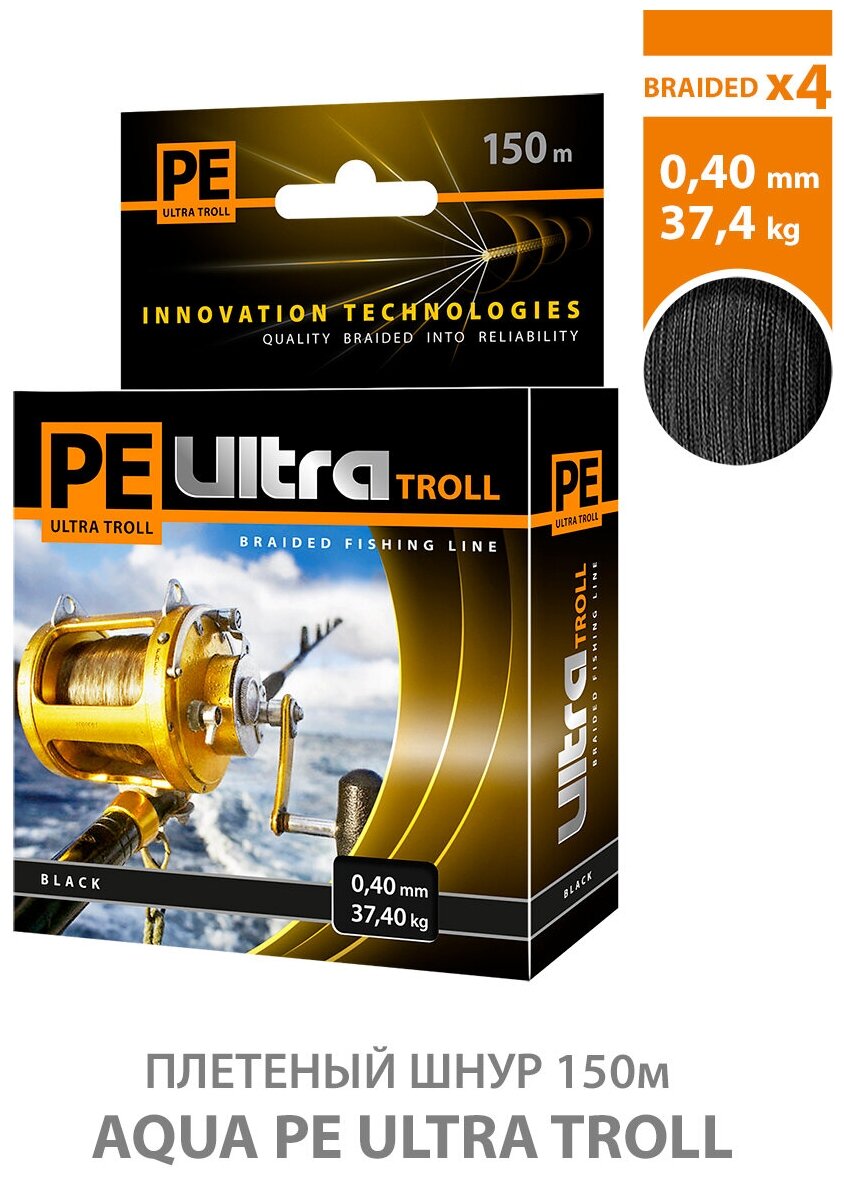 AQUA Плетеный шнур Aqua PE ULTRA TROLL 150m, black, 0.40mm
