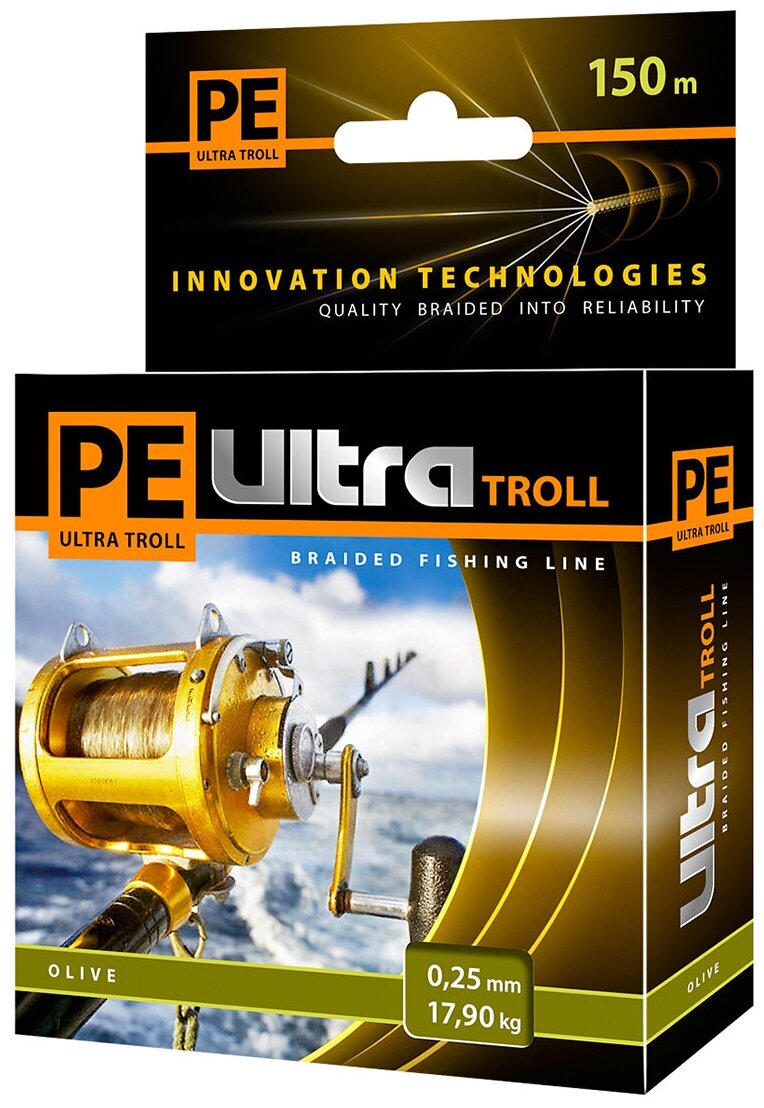 Плетеный шнур для рыбалки AQUA PE Ultra Troll оливковый 150m 0.25mm 17.90kg 2шт
