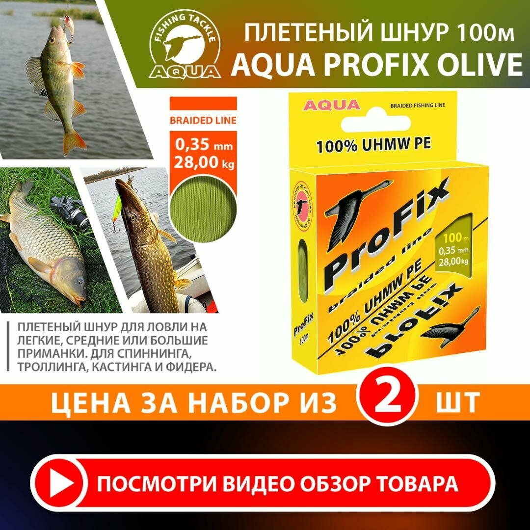 Плетеный шнур для рыбалки AQUA ProFix Olive 0,35mm 100m, 2 штуки в комплекте.