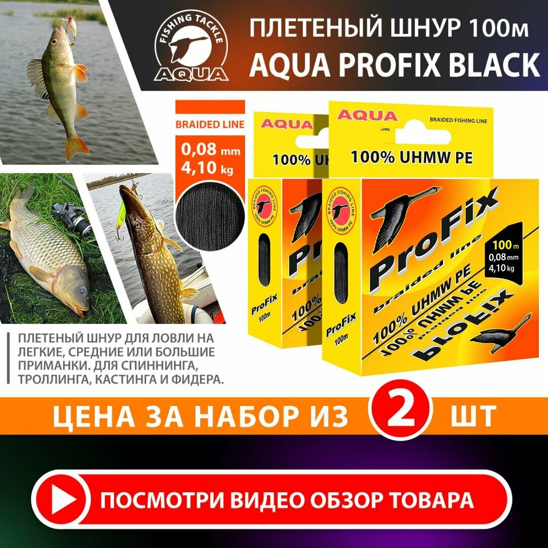 Купить Плетеный шнур для рыбалки AQUA ProFix 100m 0.08mm 4.10kg черный 2шт