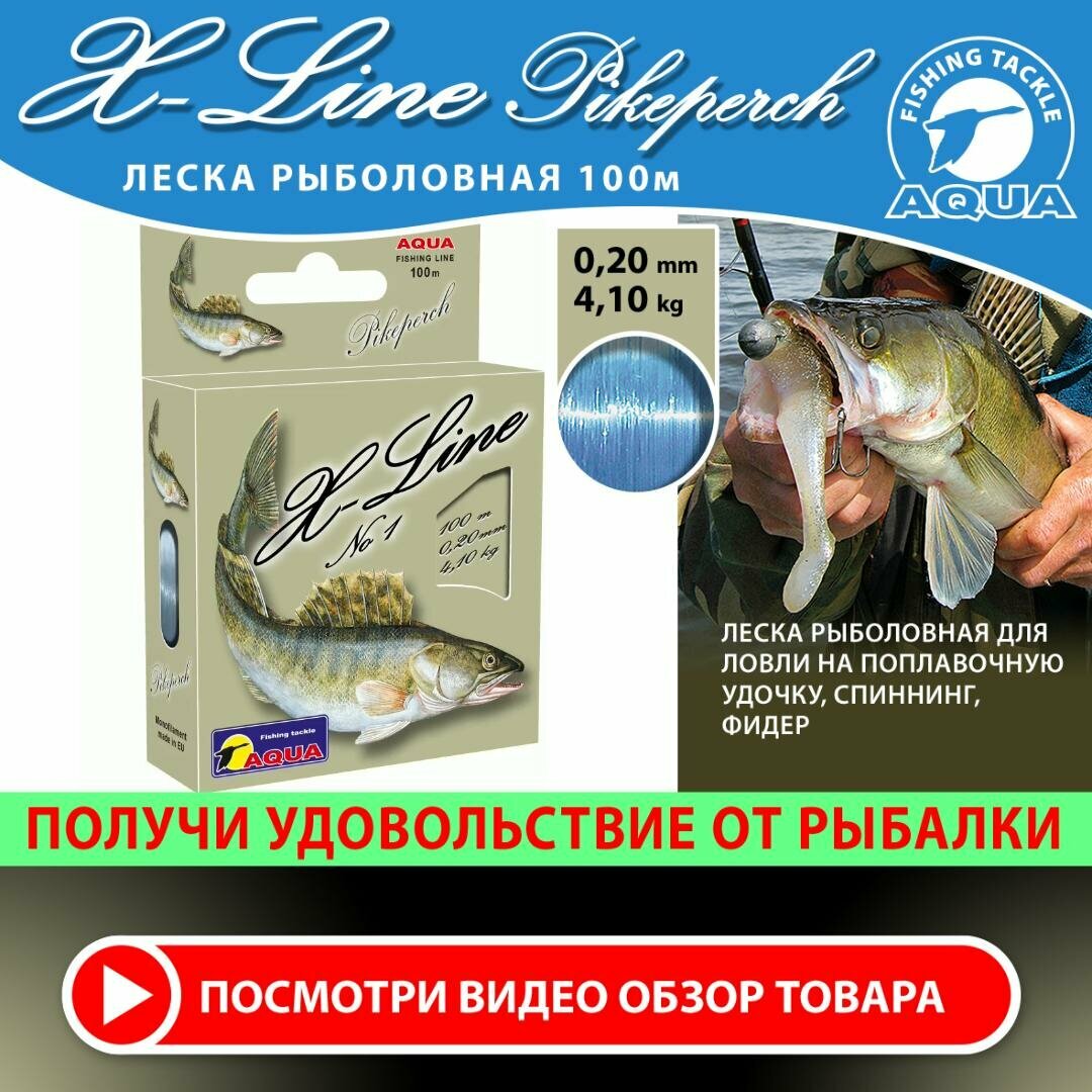 Леска для рыбалки AQUA X-Line Pikeperch (Судак) 100m 0.20mm 4.1kg цвет - светло-голубой 2шт